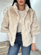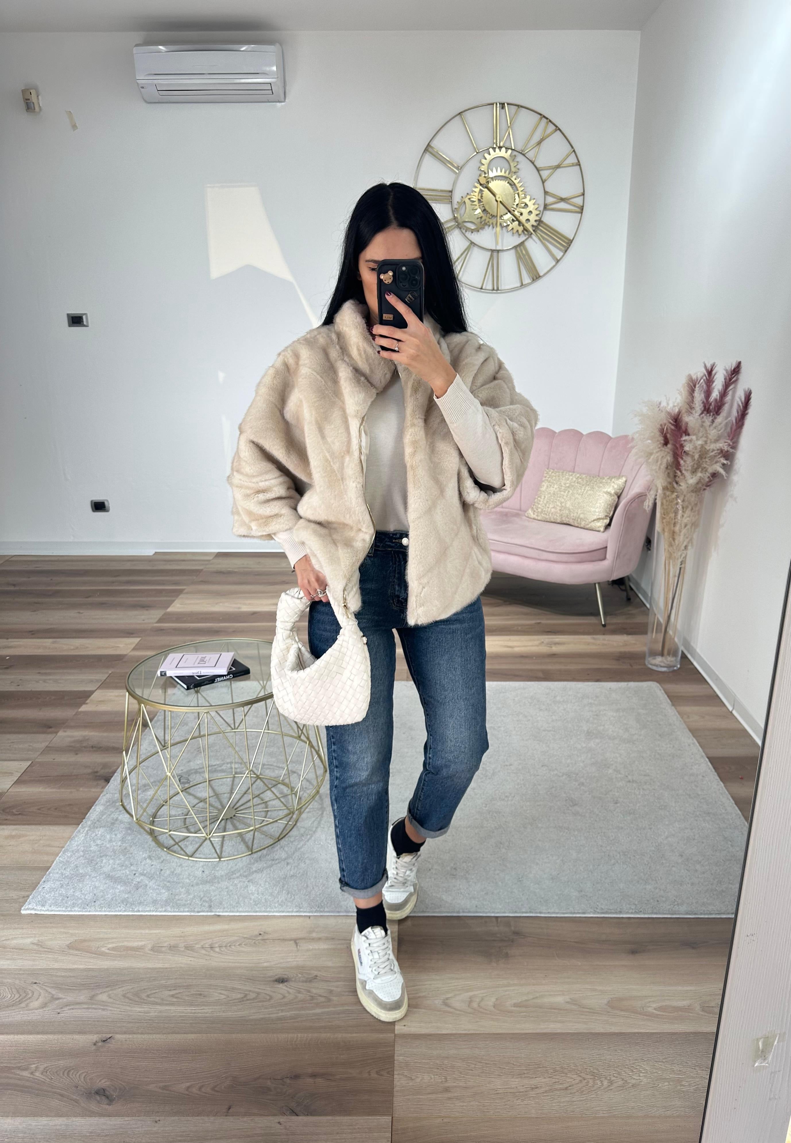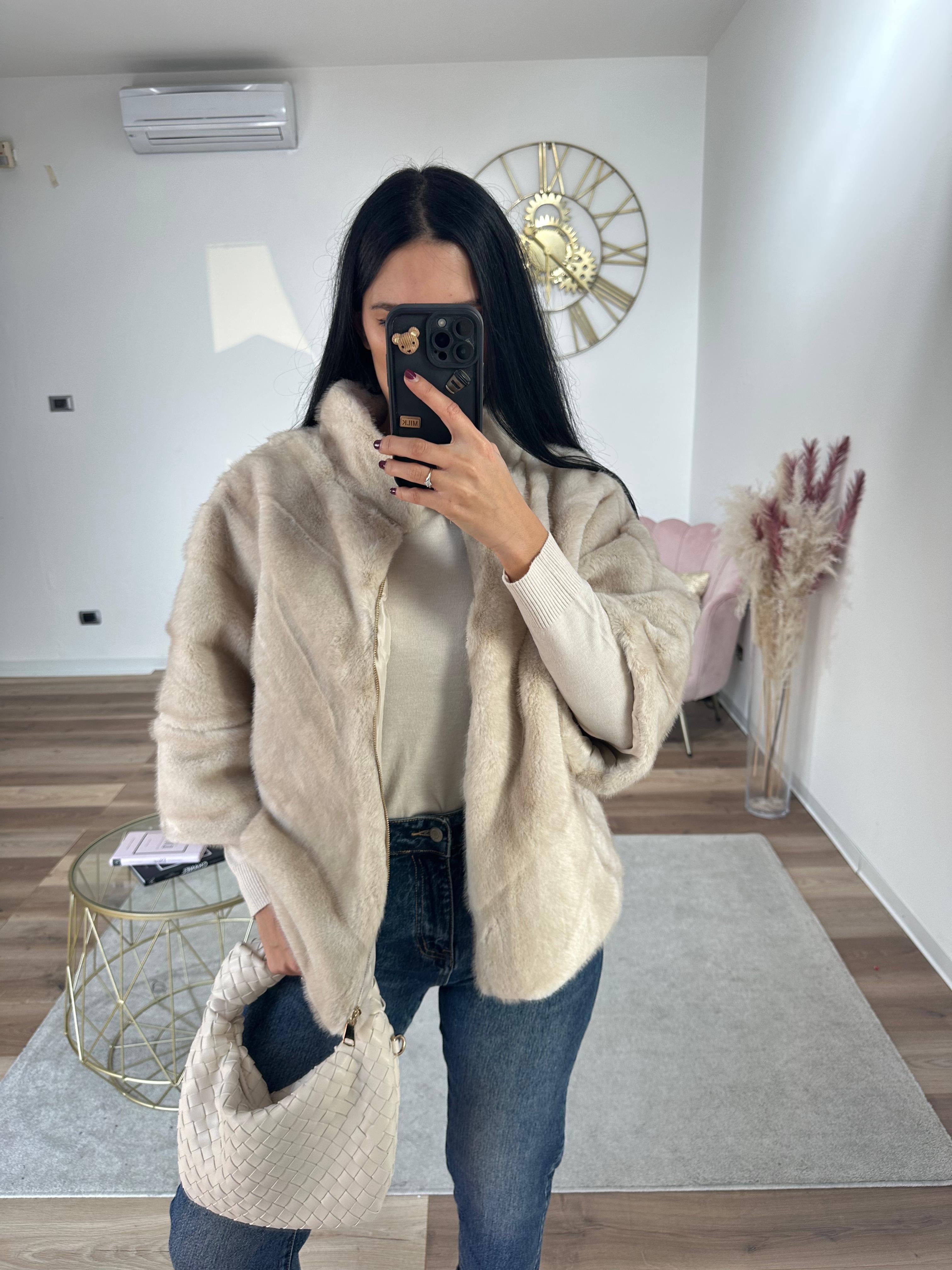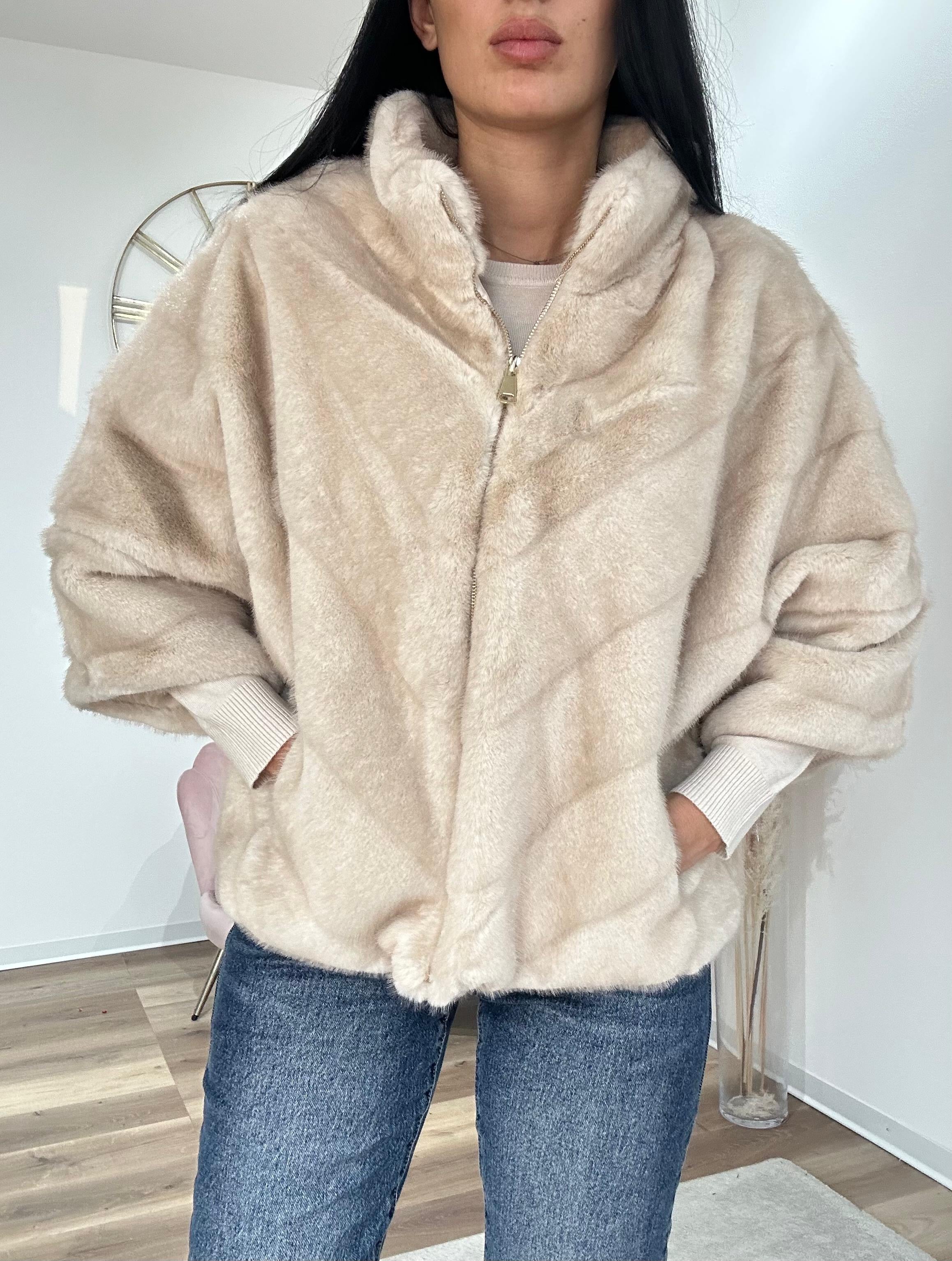Pelliccia morbidissima, ha le tasche, si chiude con zip, foderata internamente, maniche a 3/4