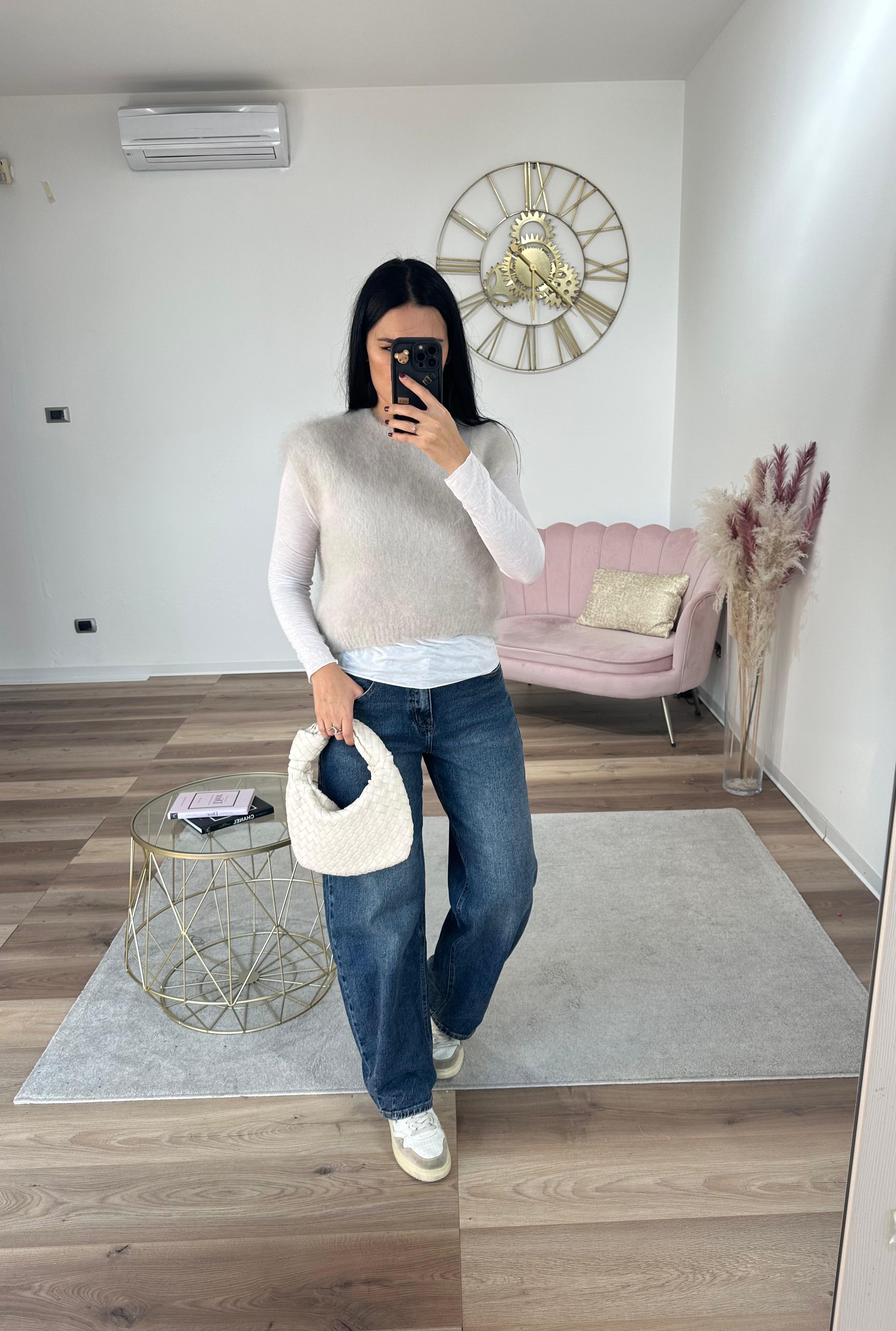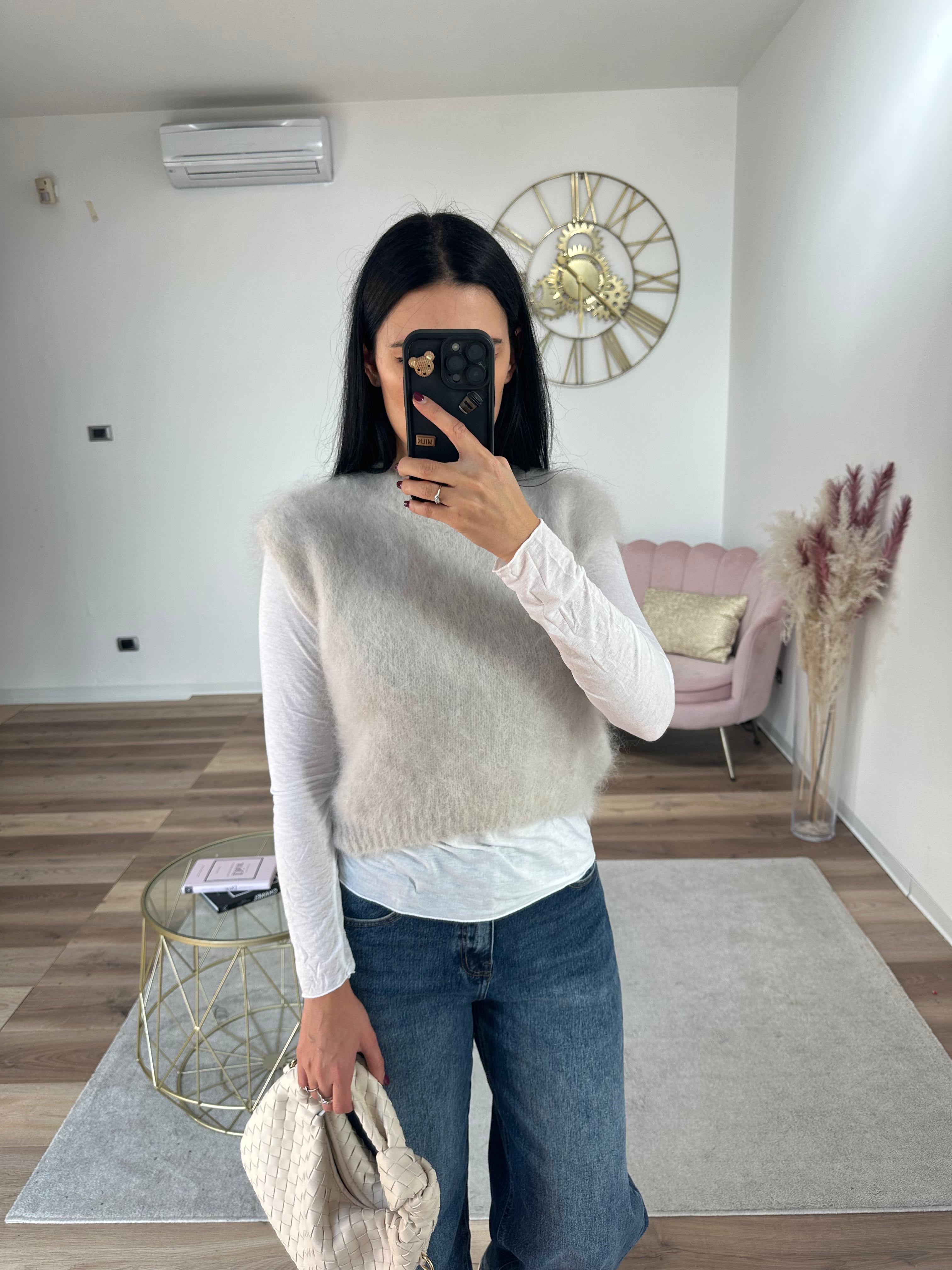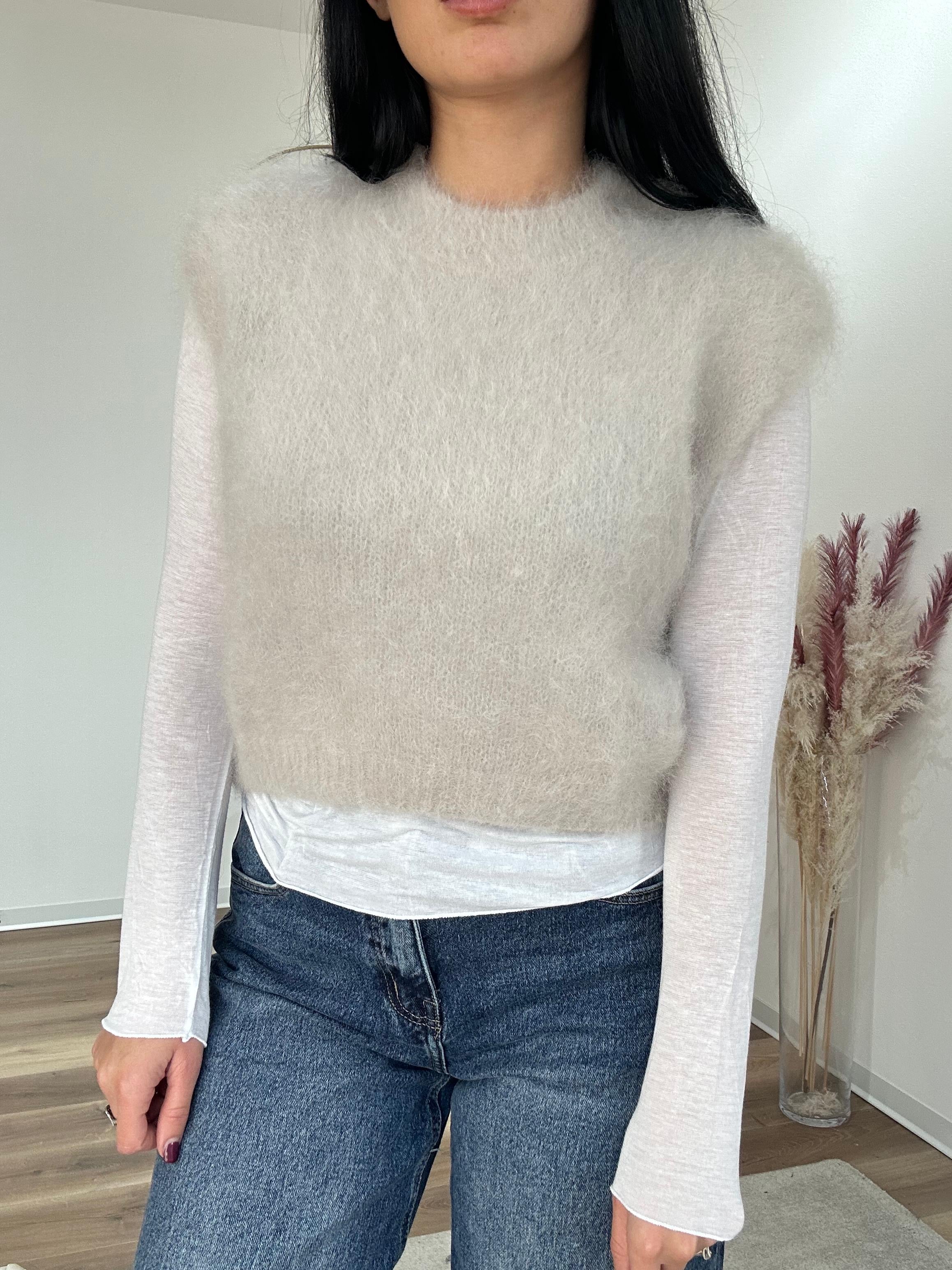 Pull in kid mohair, molto caldo e morbido, lunghezza normale