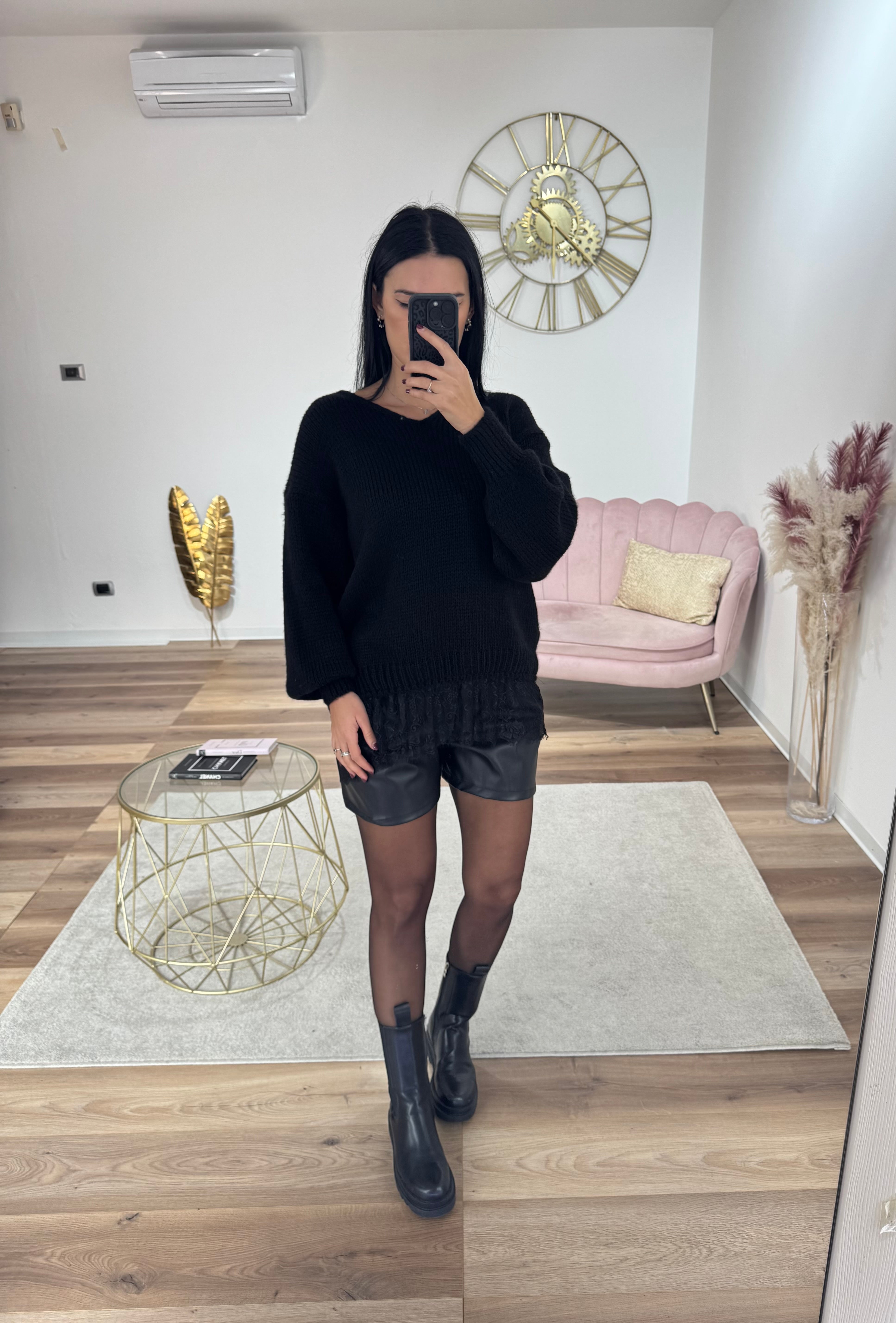 Maxipull caldo e morbido, con fusciacca, pizzo nel fondo, elasticizzato (10% mohair)