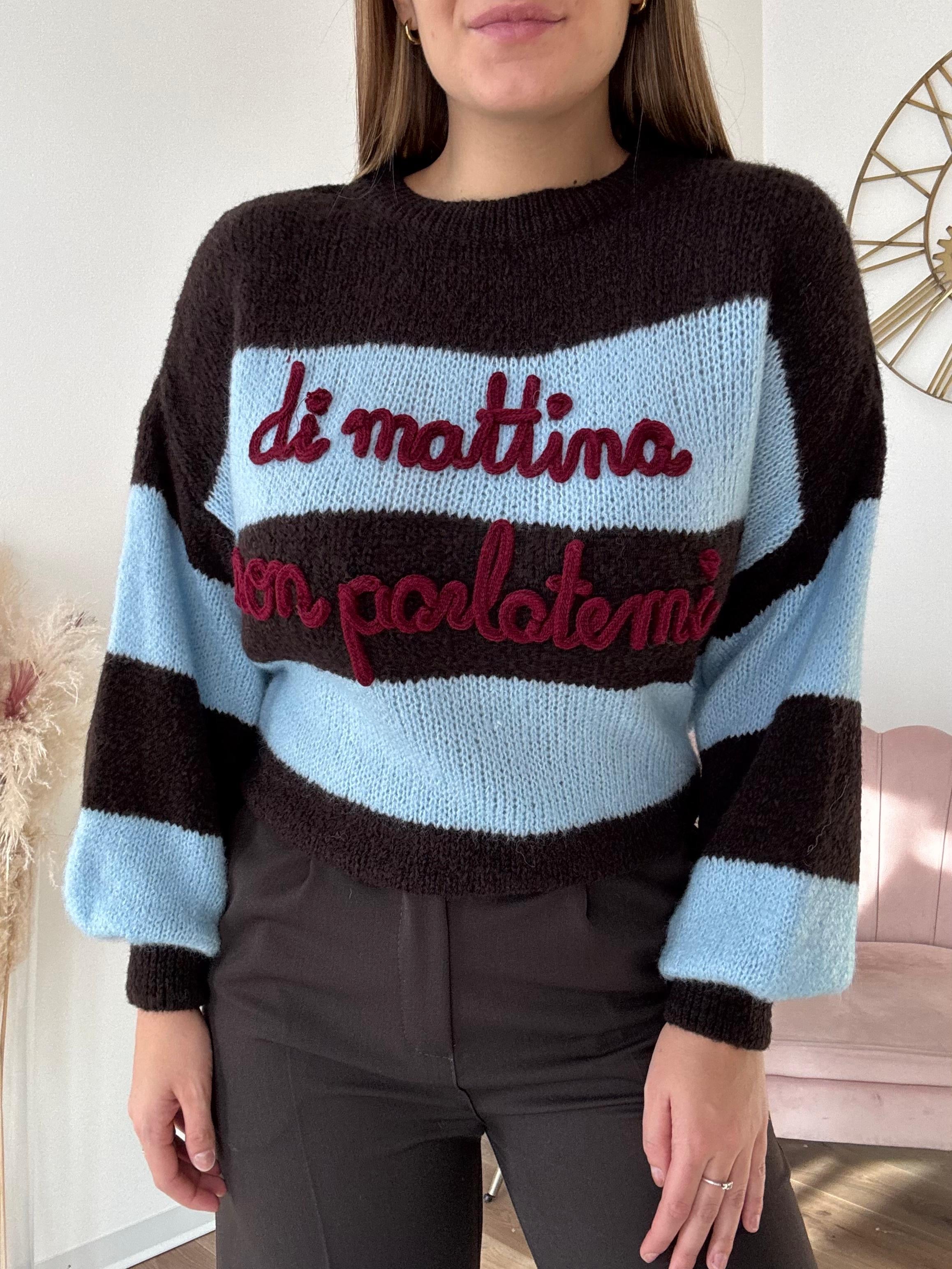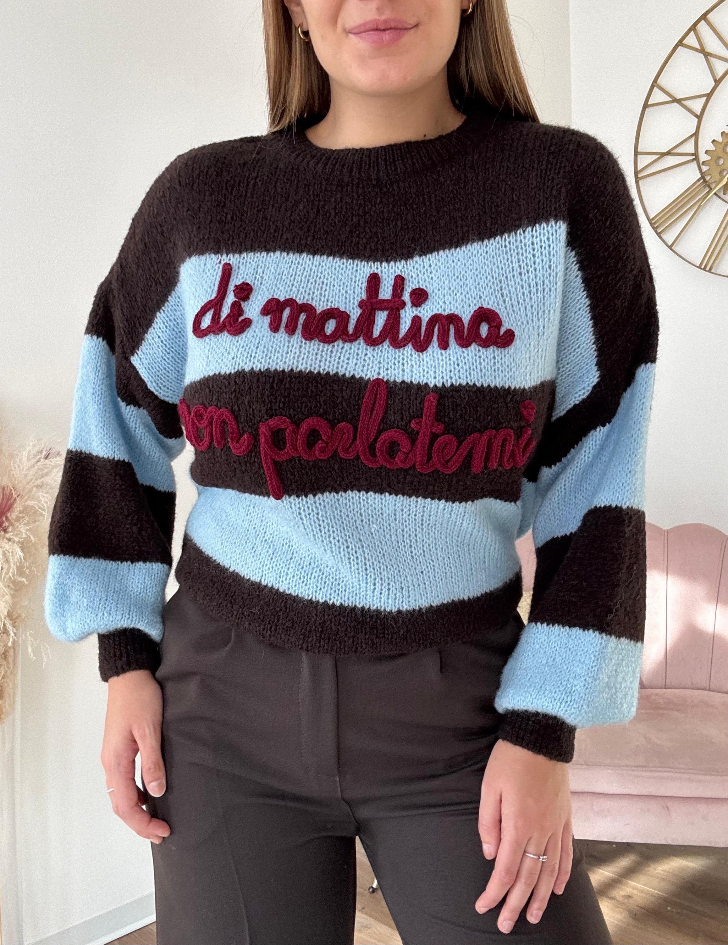 Pull morbido e caldo con scritta in rilievo, elasticizzato, maniche a sbuffo, lunghezza normale