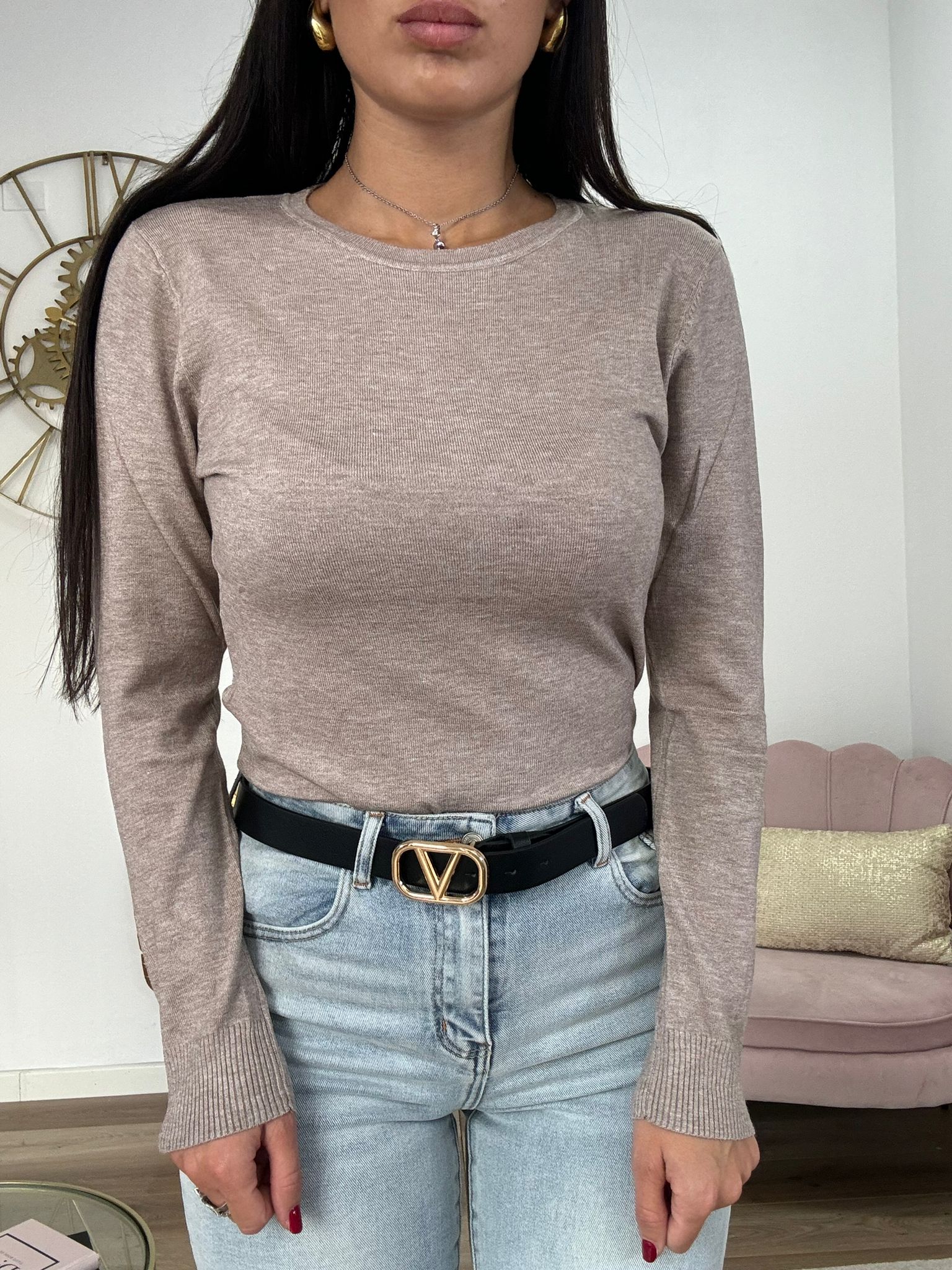 Maglia modello a girocollo, calda e morbida, elasticizzata e lunghezza basic.