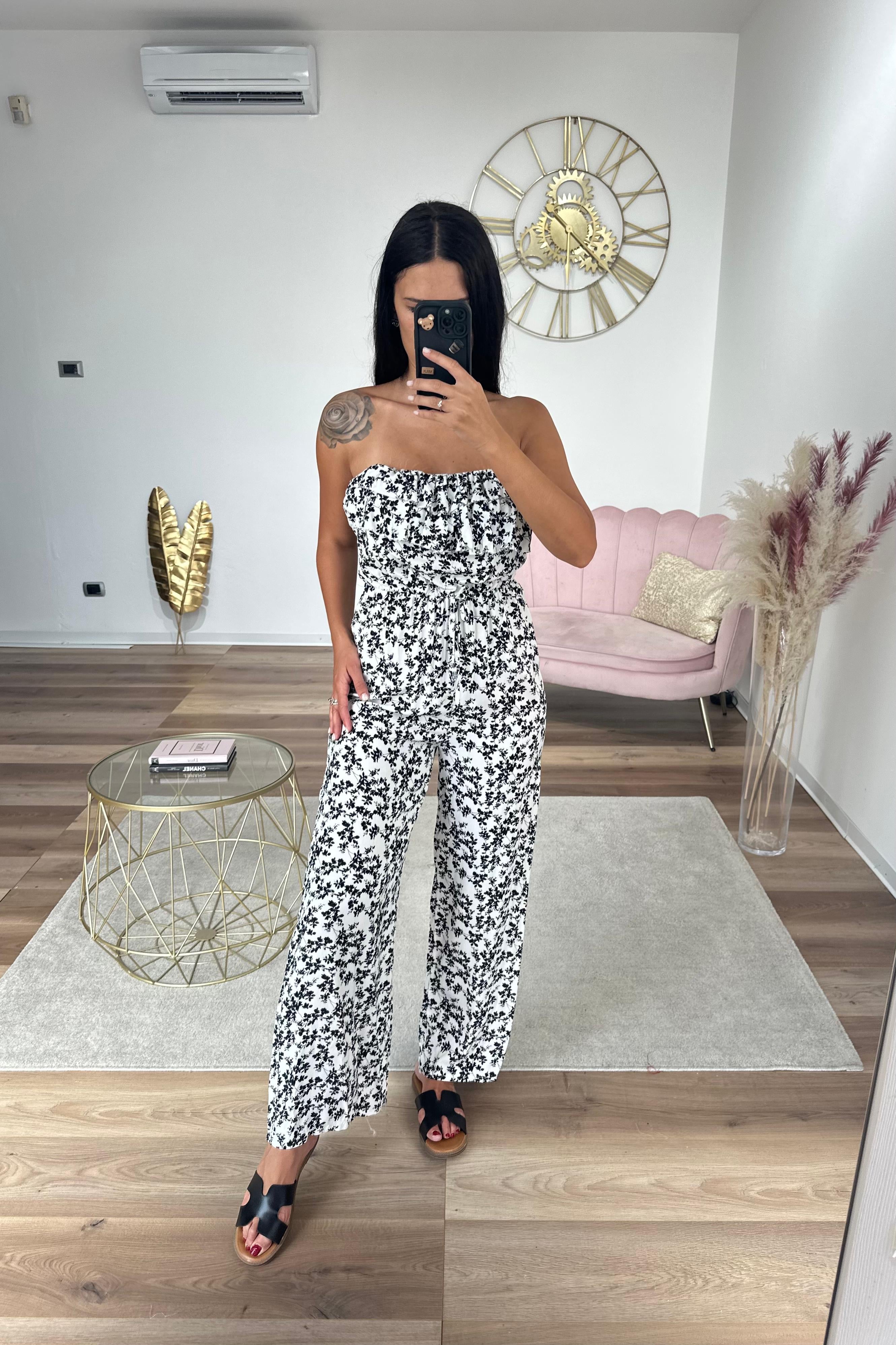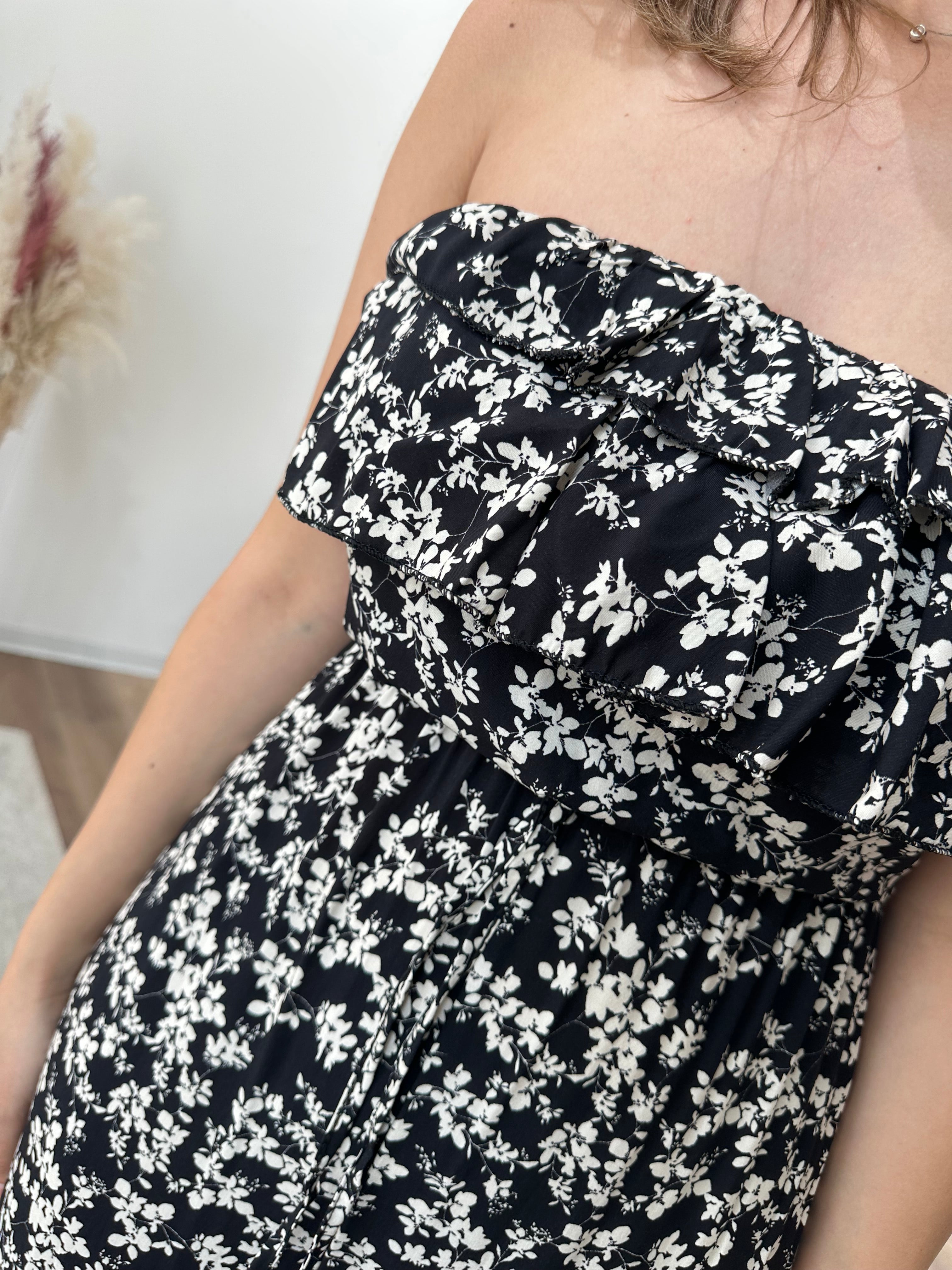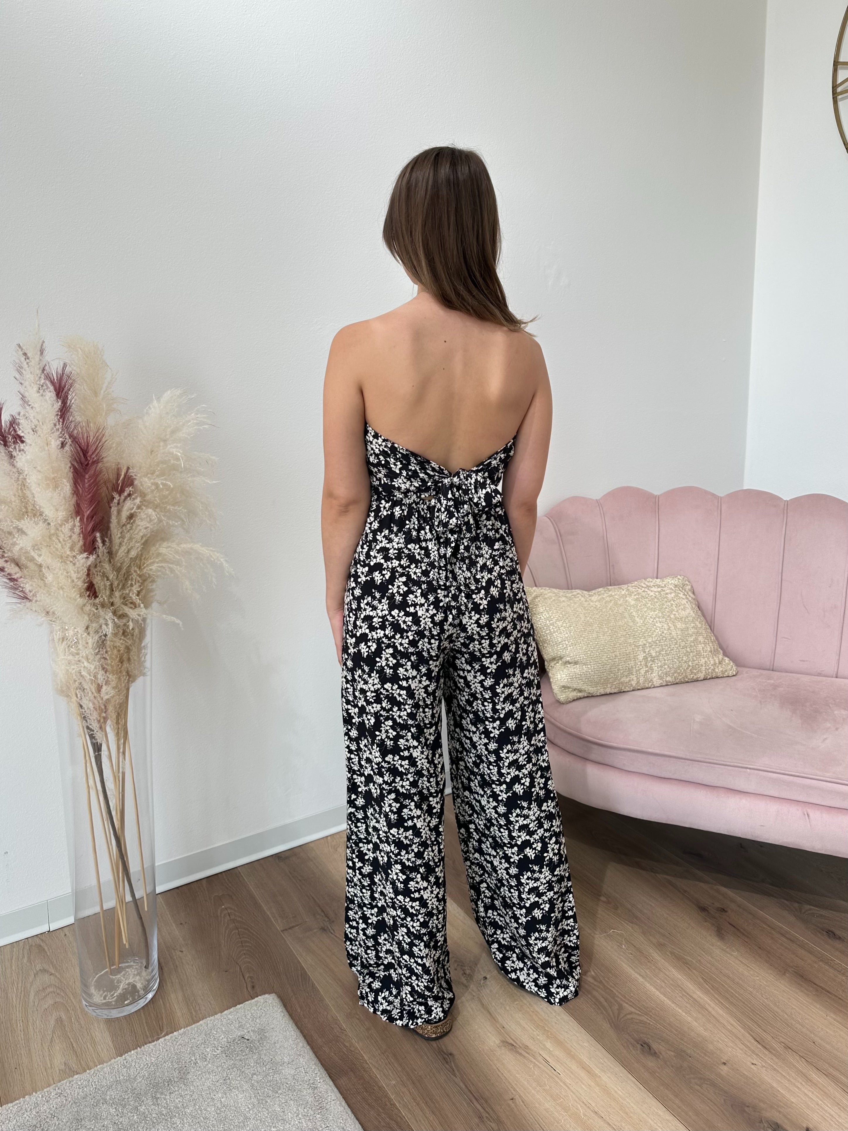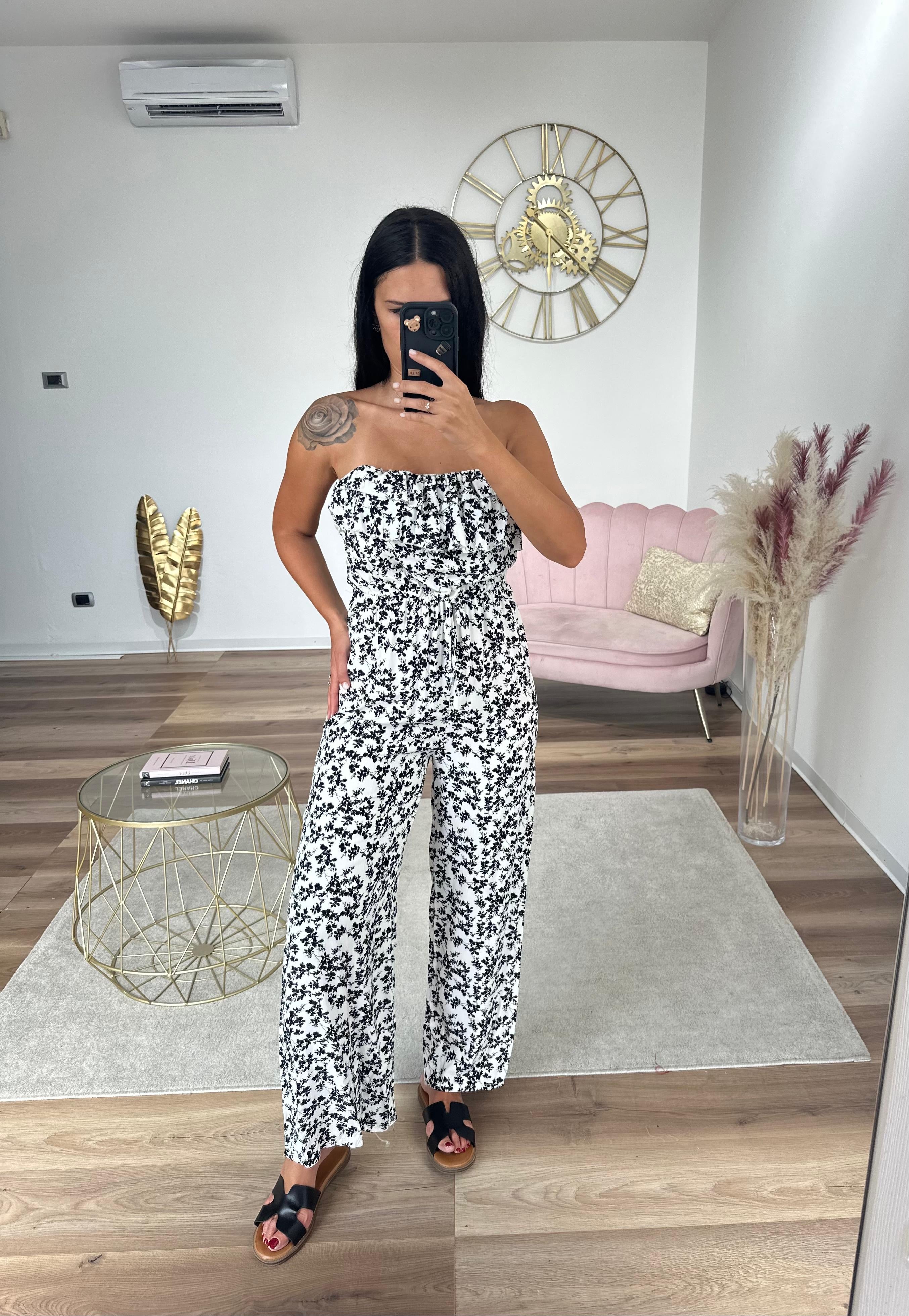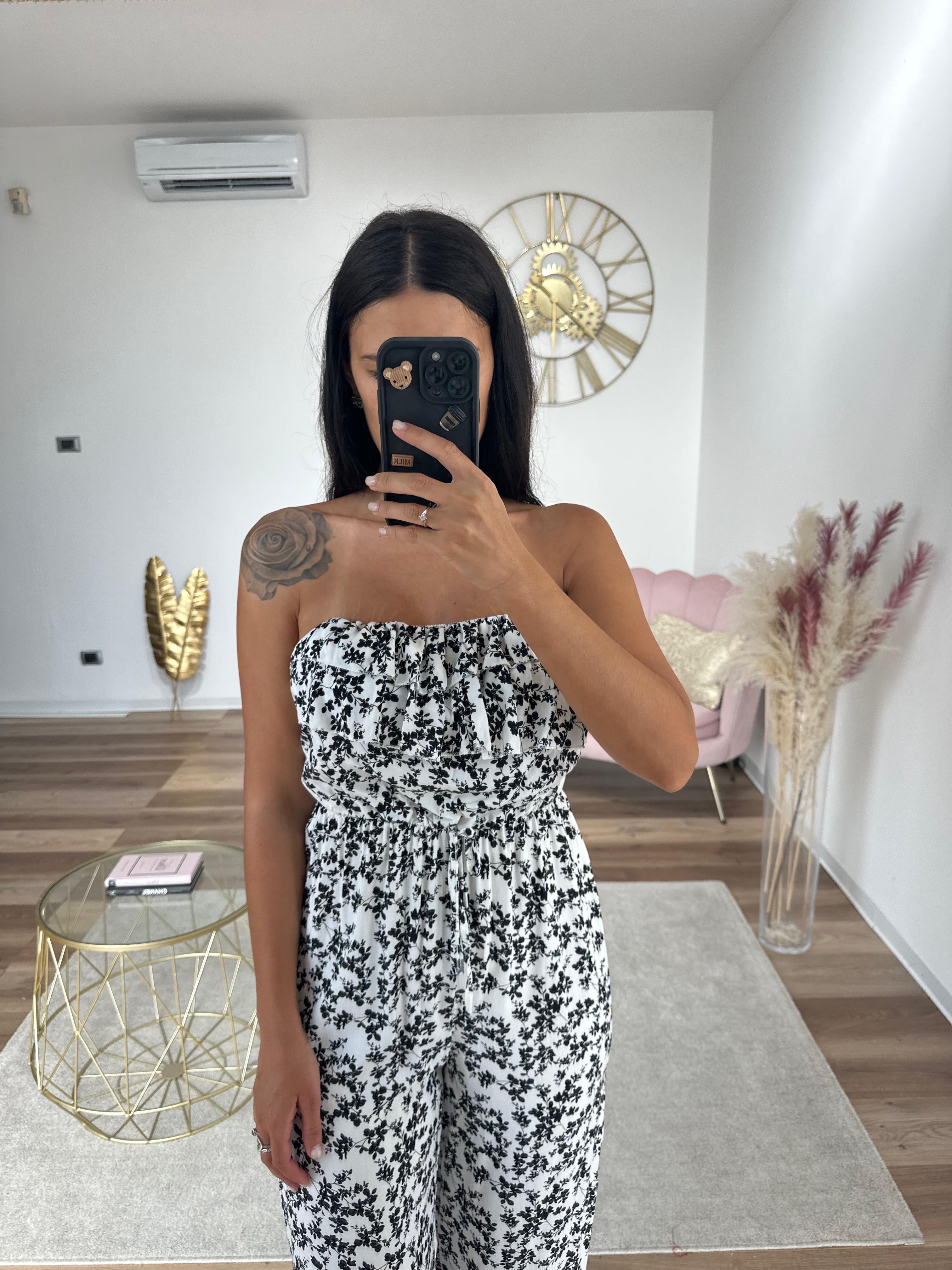 Tuta fresca e leggera, si chiude sul retro con fiocco, vita elastica,