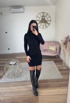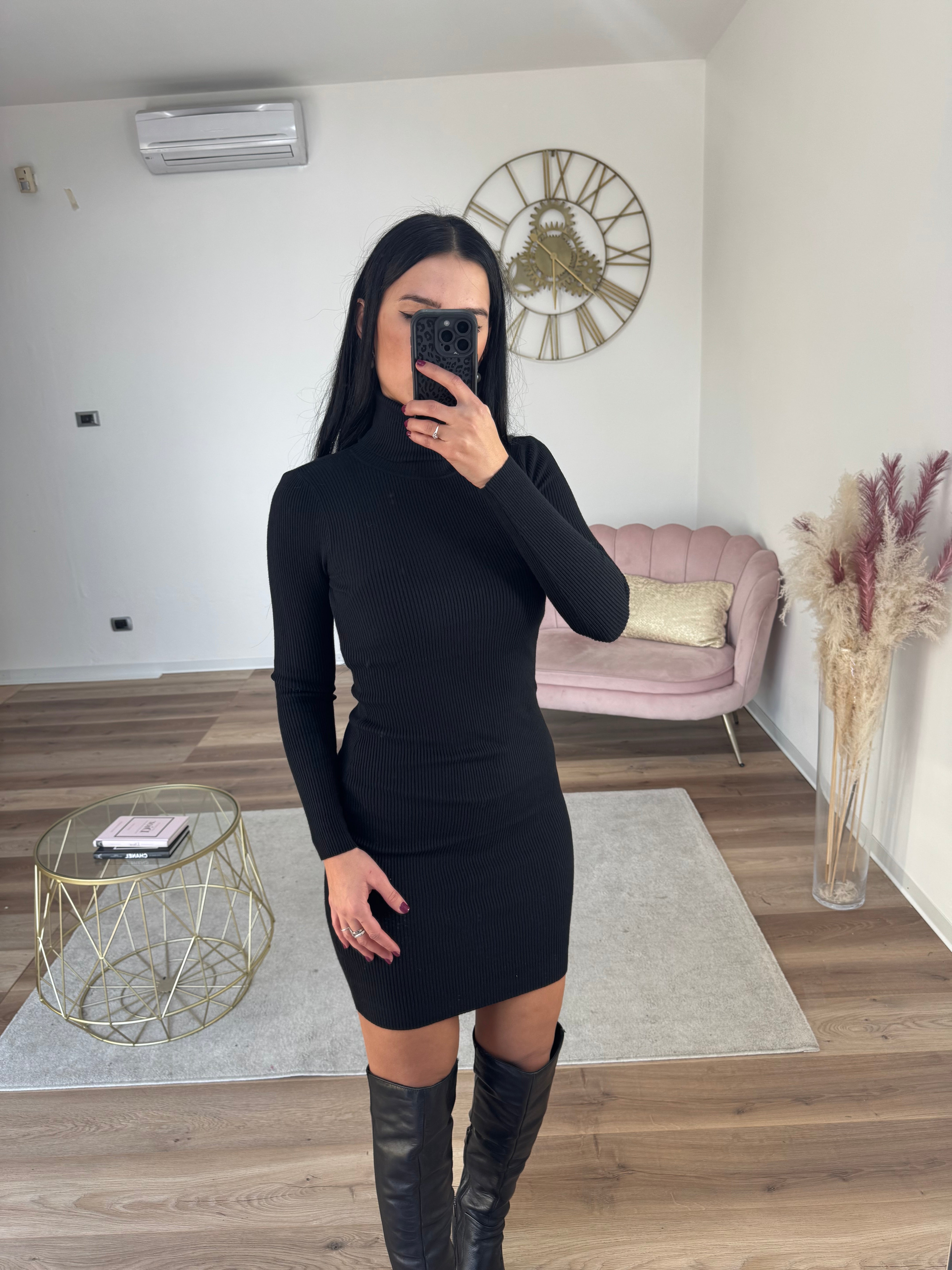 Abito caldo e morbido, tessuto a costine, modello a collo alto, elasticizzato