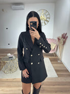 Blazer dress foderato internamente, spalline imbottite, si può portare anche come giacca