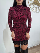 Abito con fantasia animalier in rilievo, in velluto, ha la sottoveste, maniche leggermente velate, pizzo sul fondo, elasticizzato, coppe non preformate