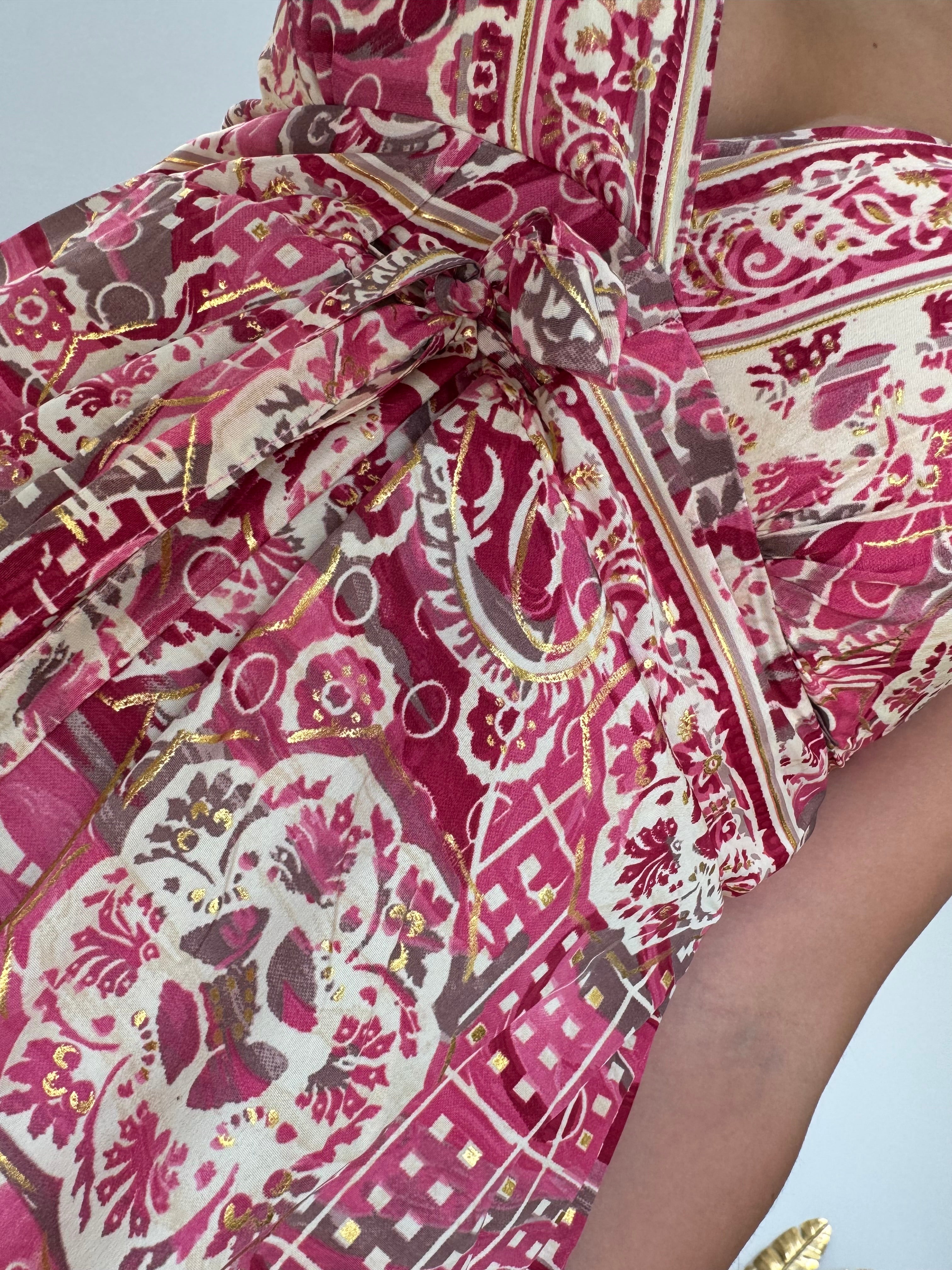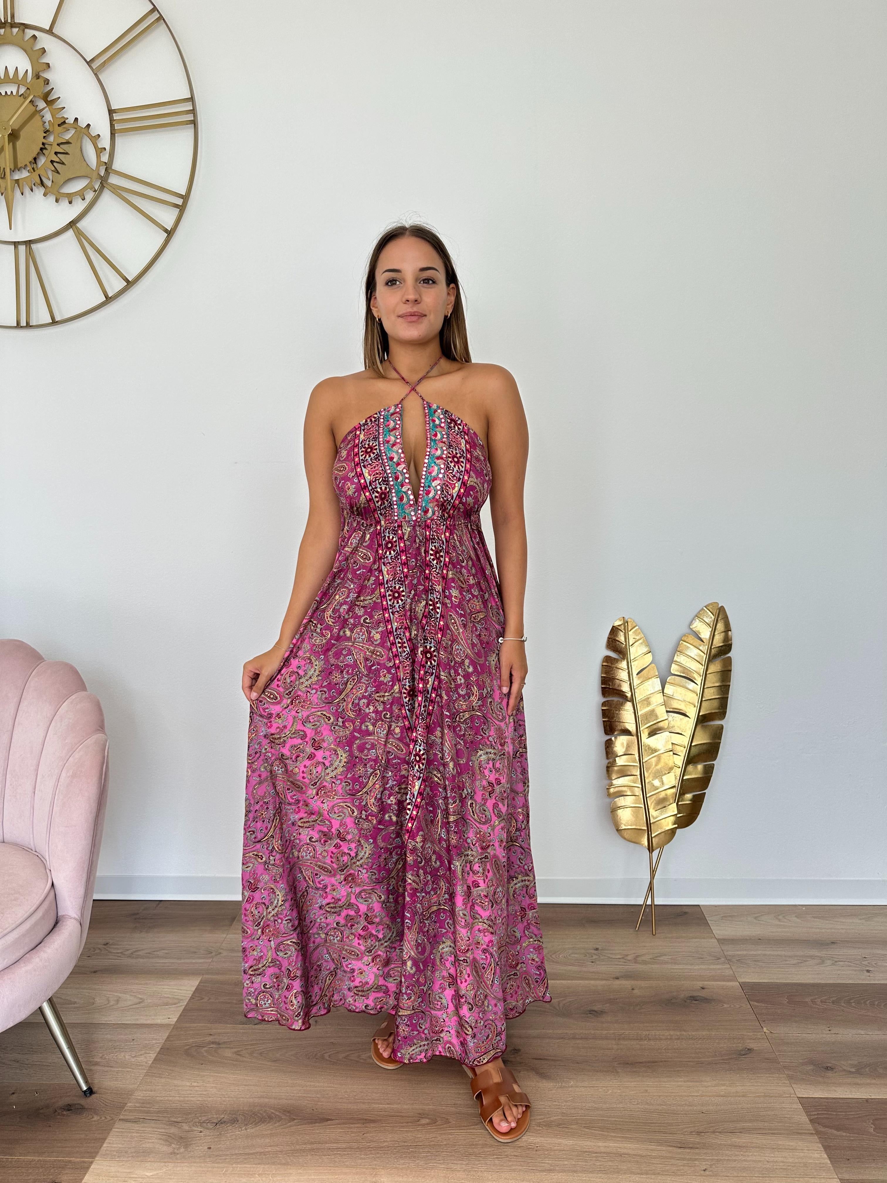 Abito con scollo profondo, si chiude al collo, coulisse regolabile in base alla taglia