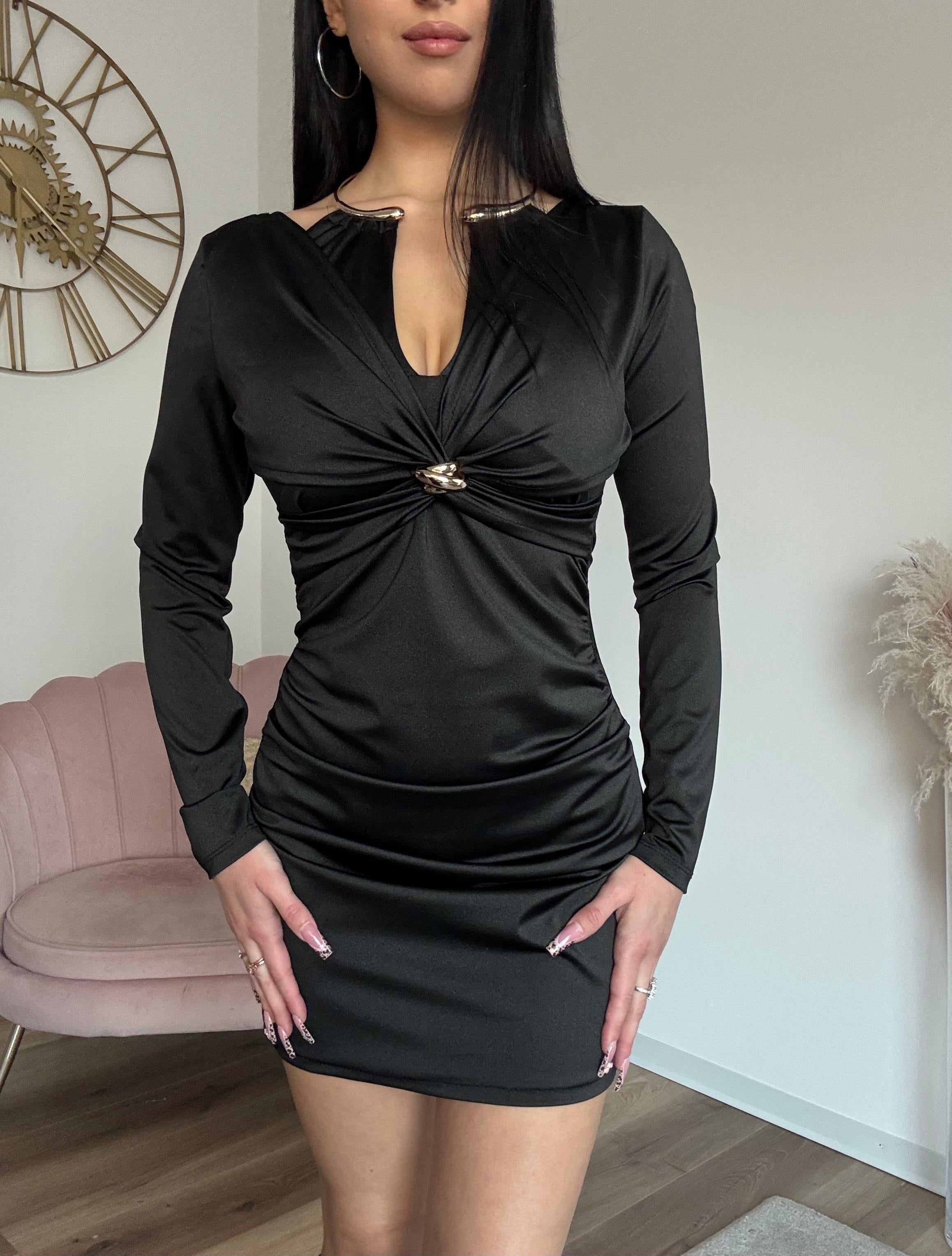 Abito aderente ma elasticizzato, dettagli dorati, coppe non preformate