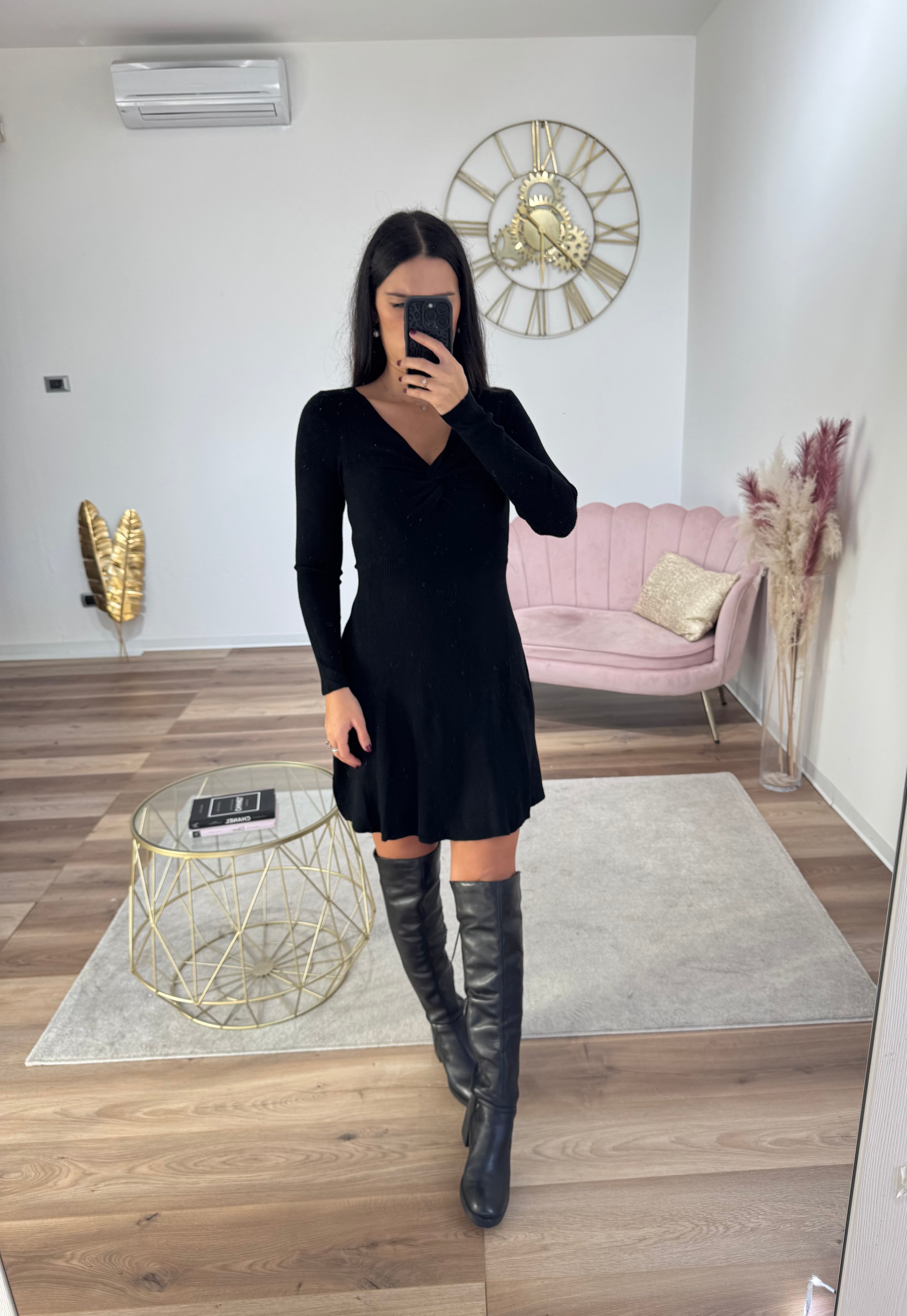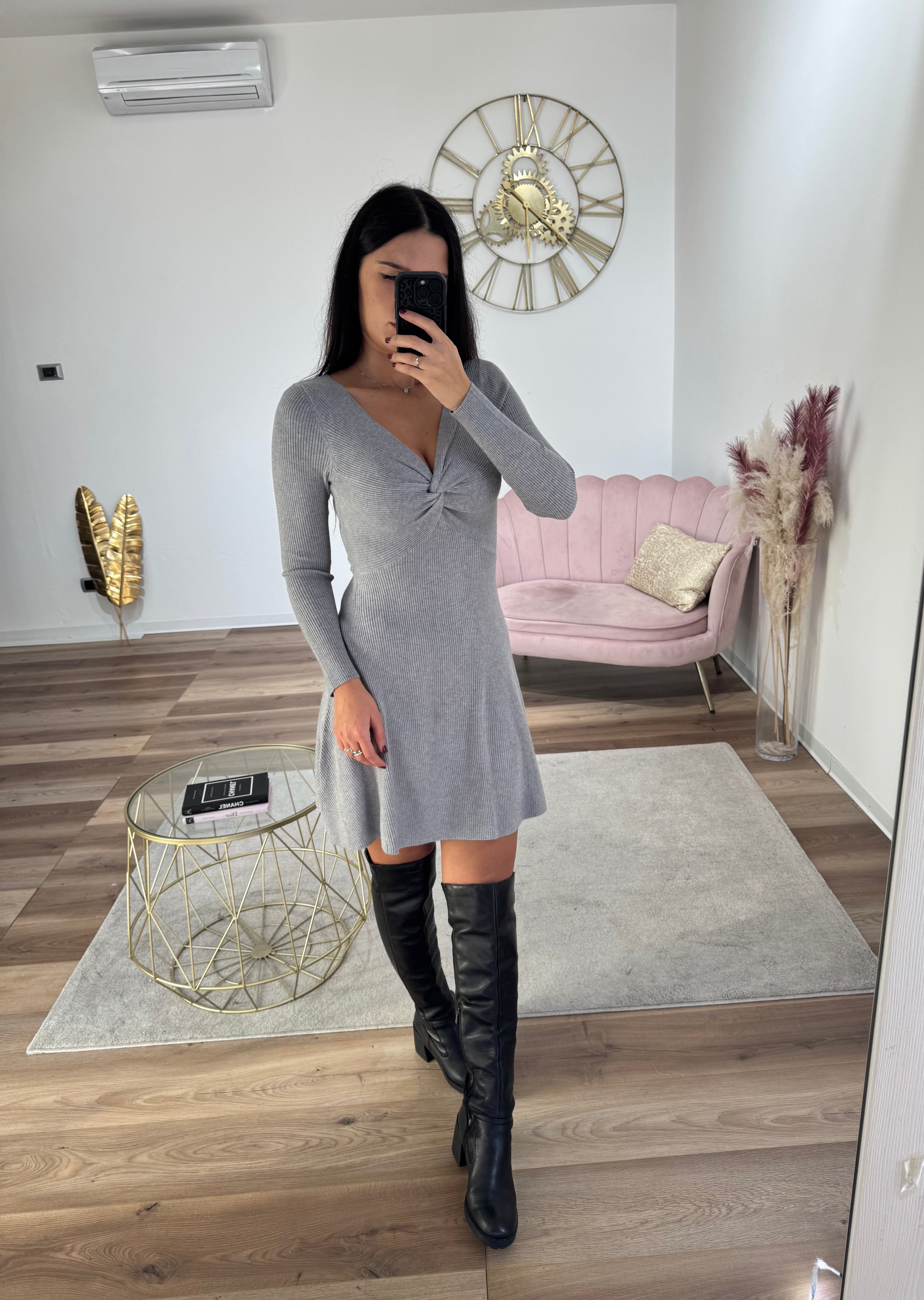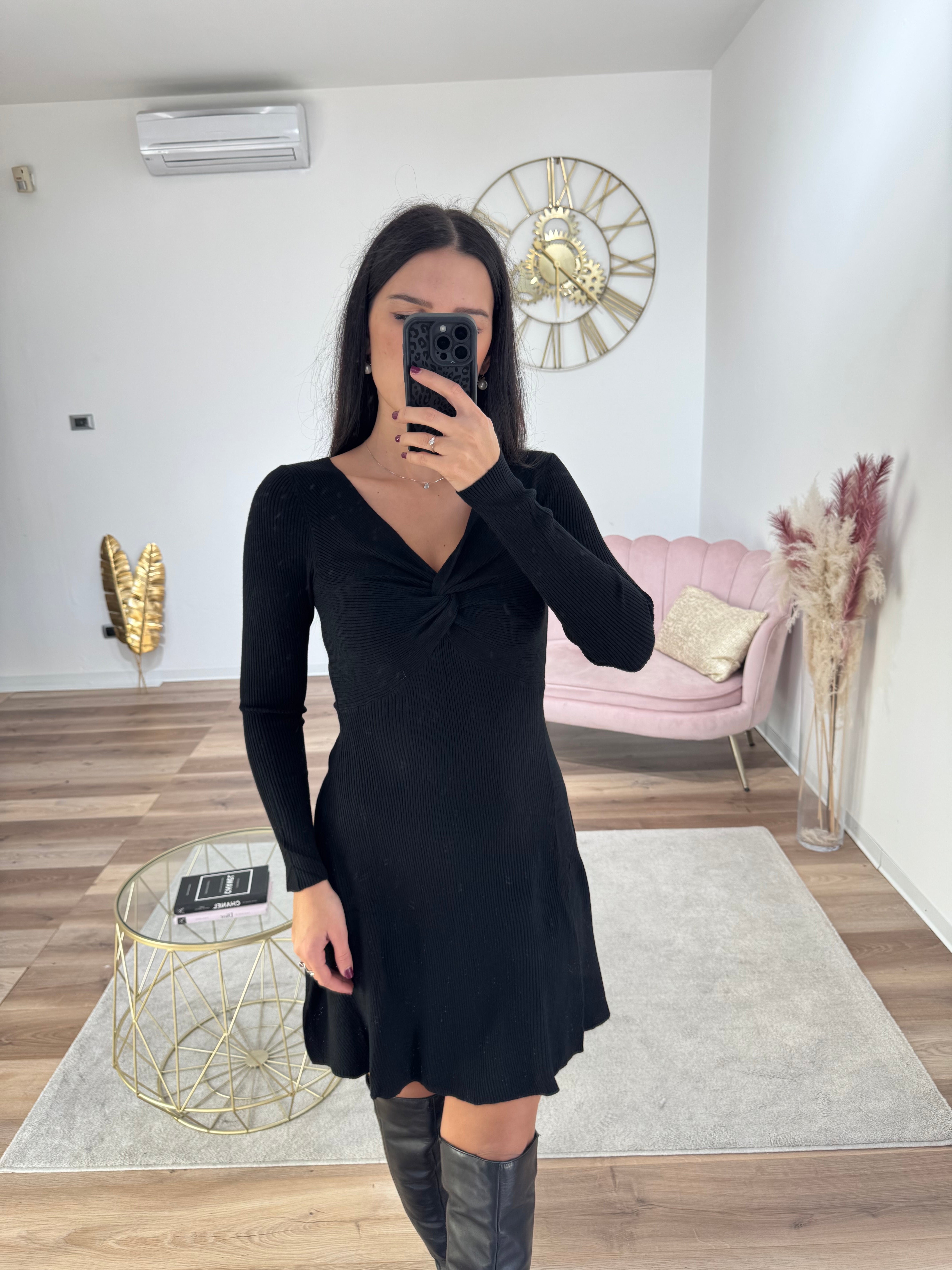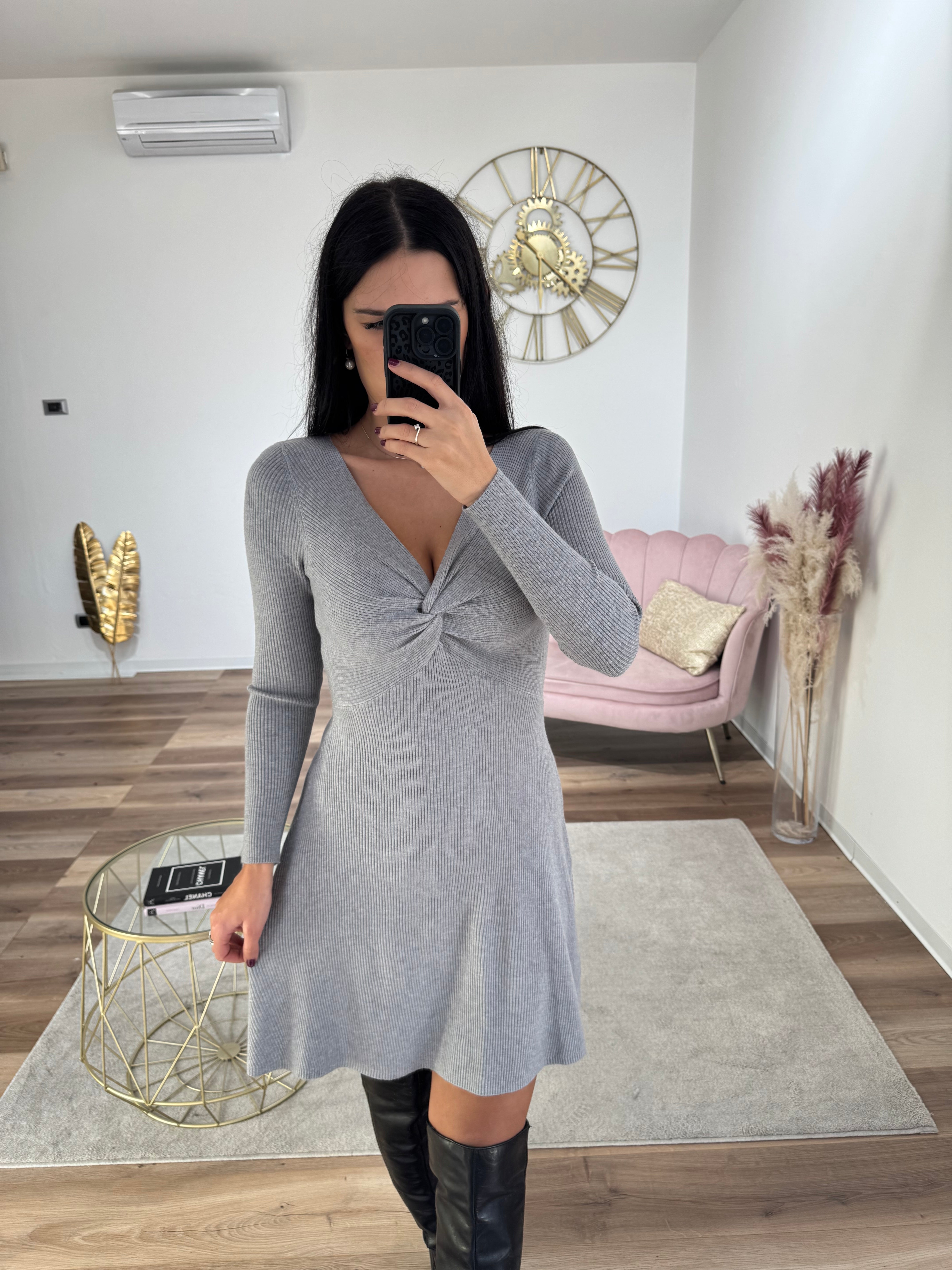 Abito con intreccio morbido lungo i fianchi, tessuto morbido a costine, molto elasticizzato, vita elastica