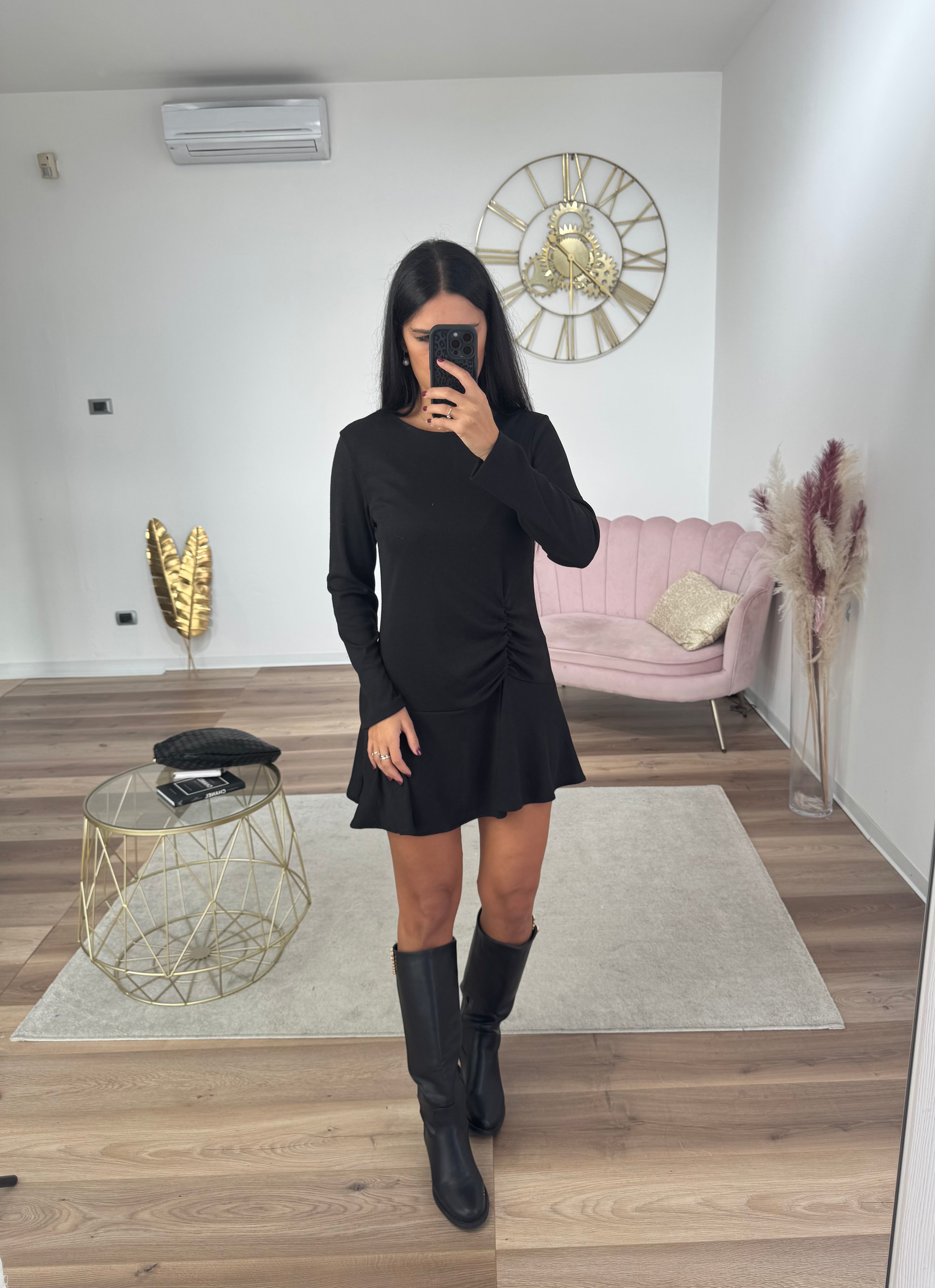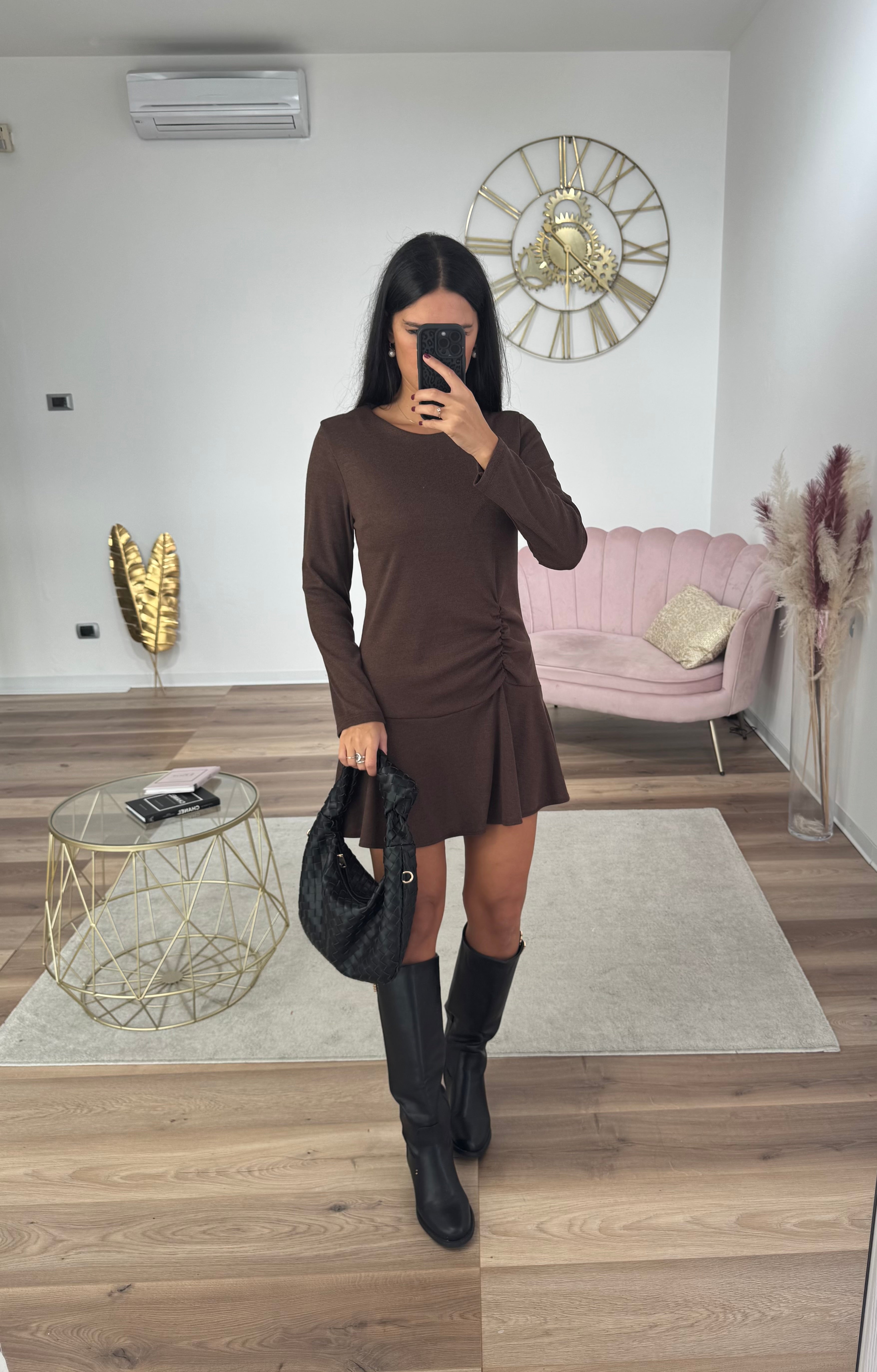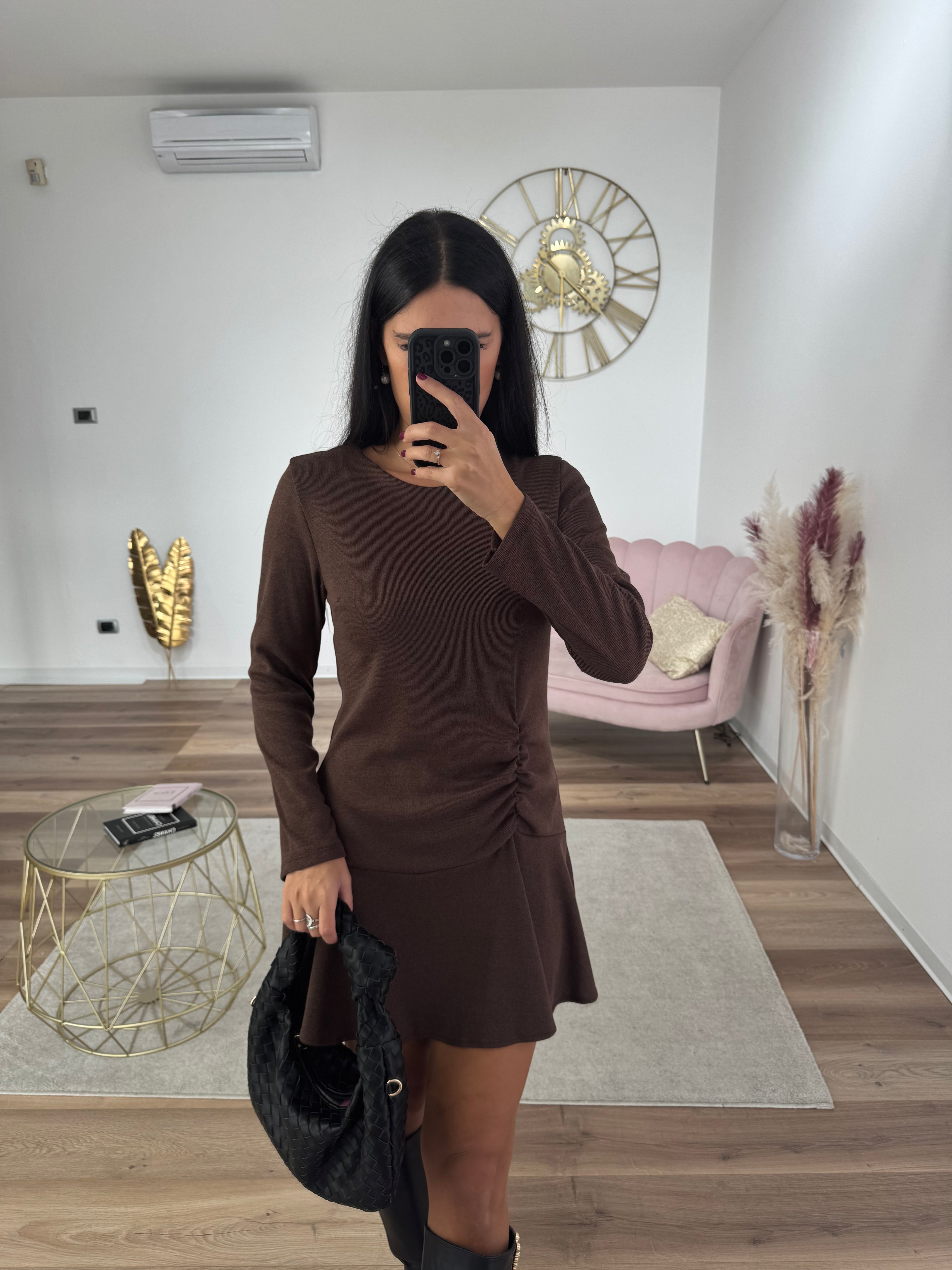 Abito in maglia con arriciatura davanti, molto elasticizzato.