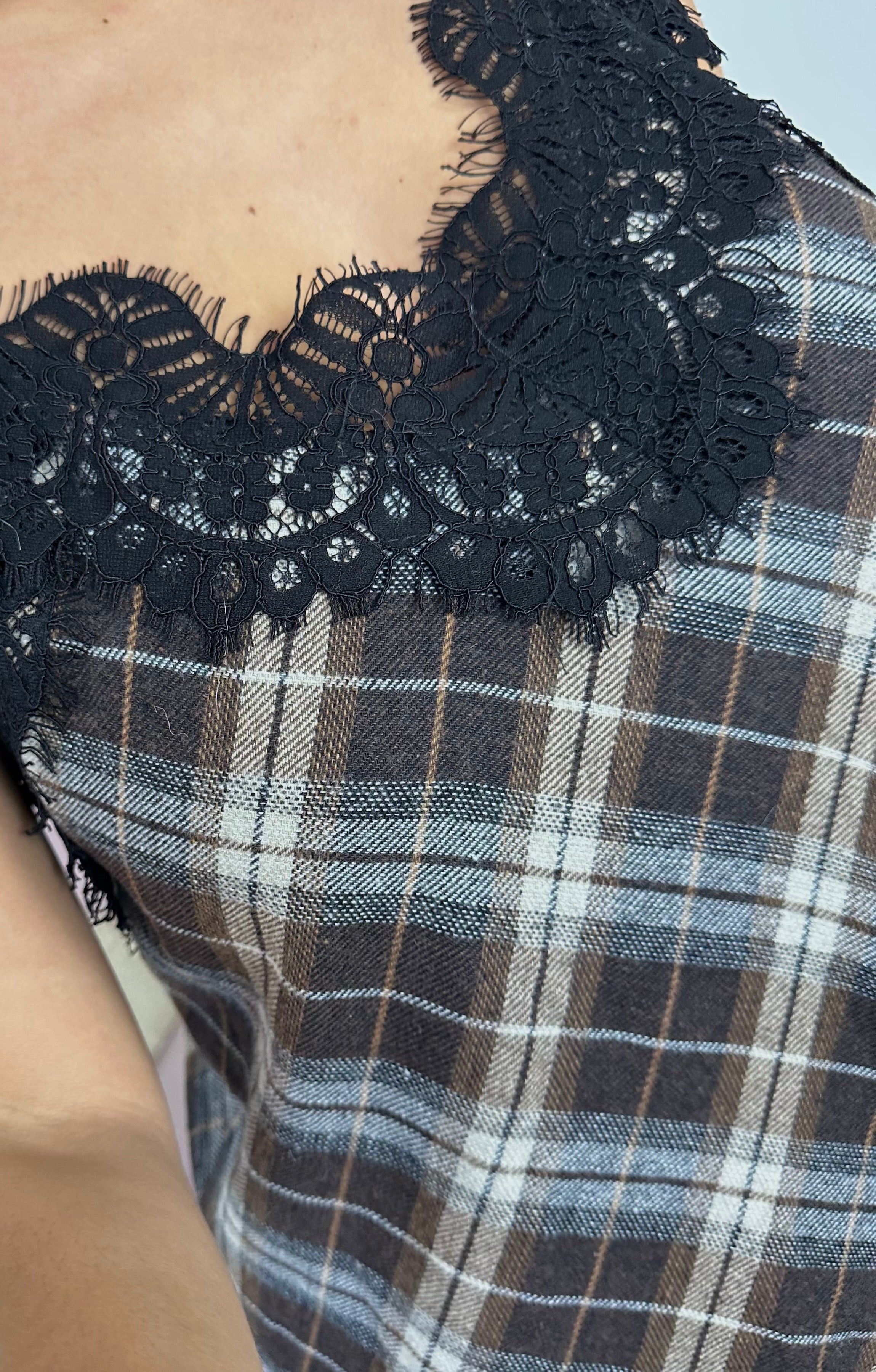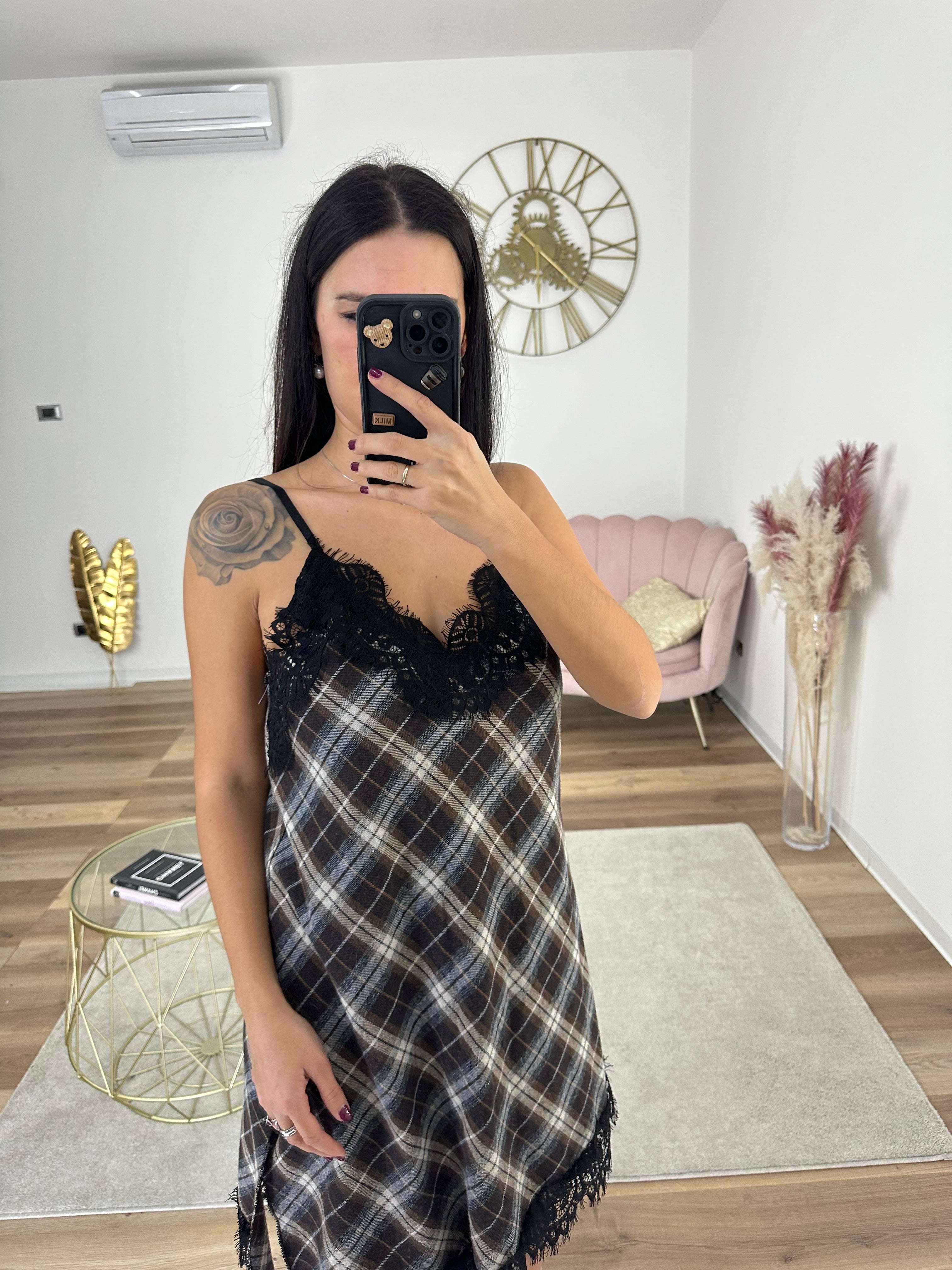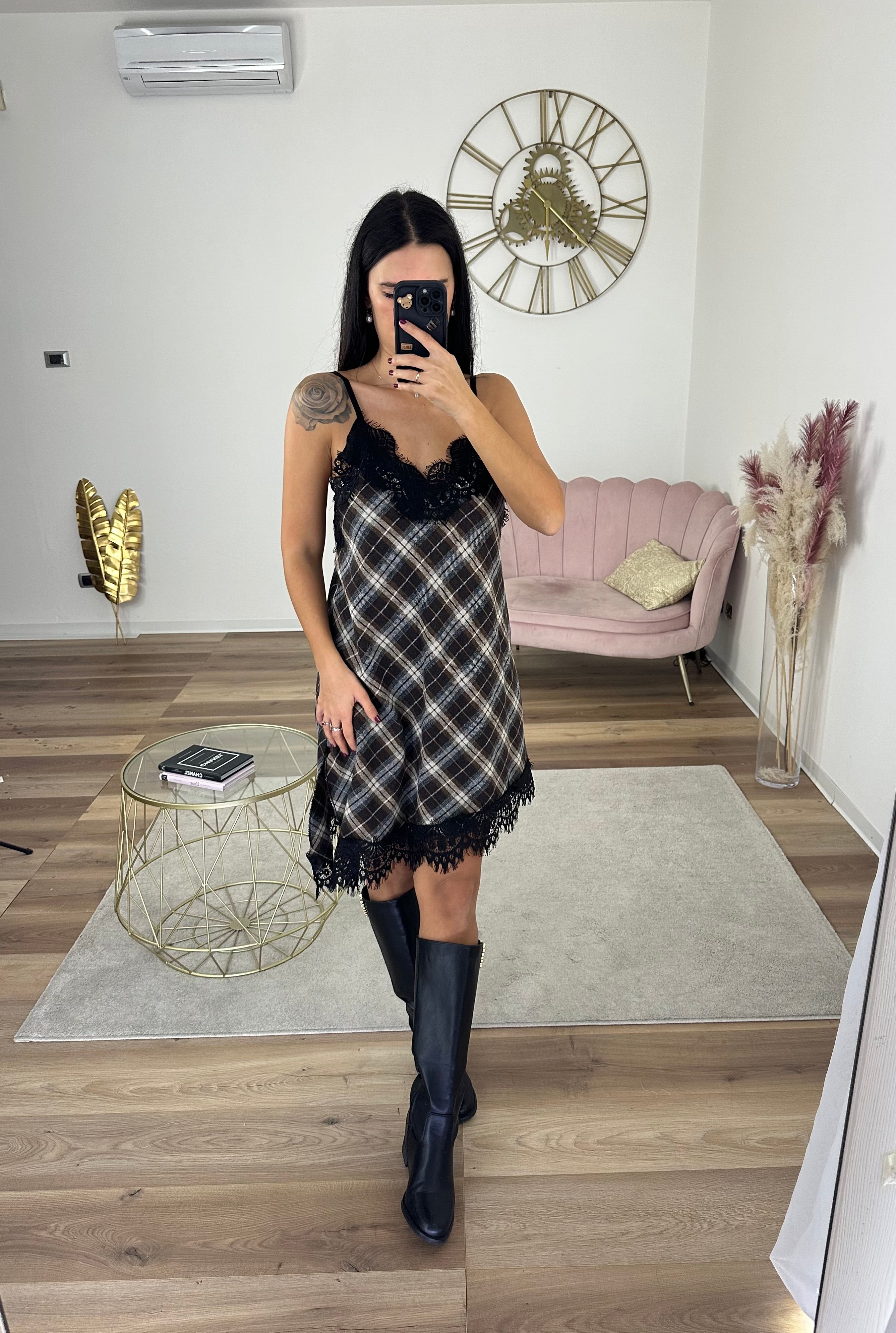 Abito in flanella, spacco laterale, modello svasato, bretelle regolabili