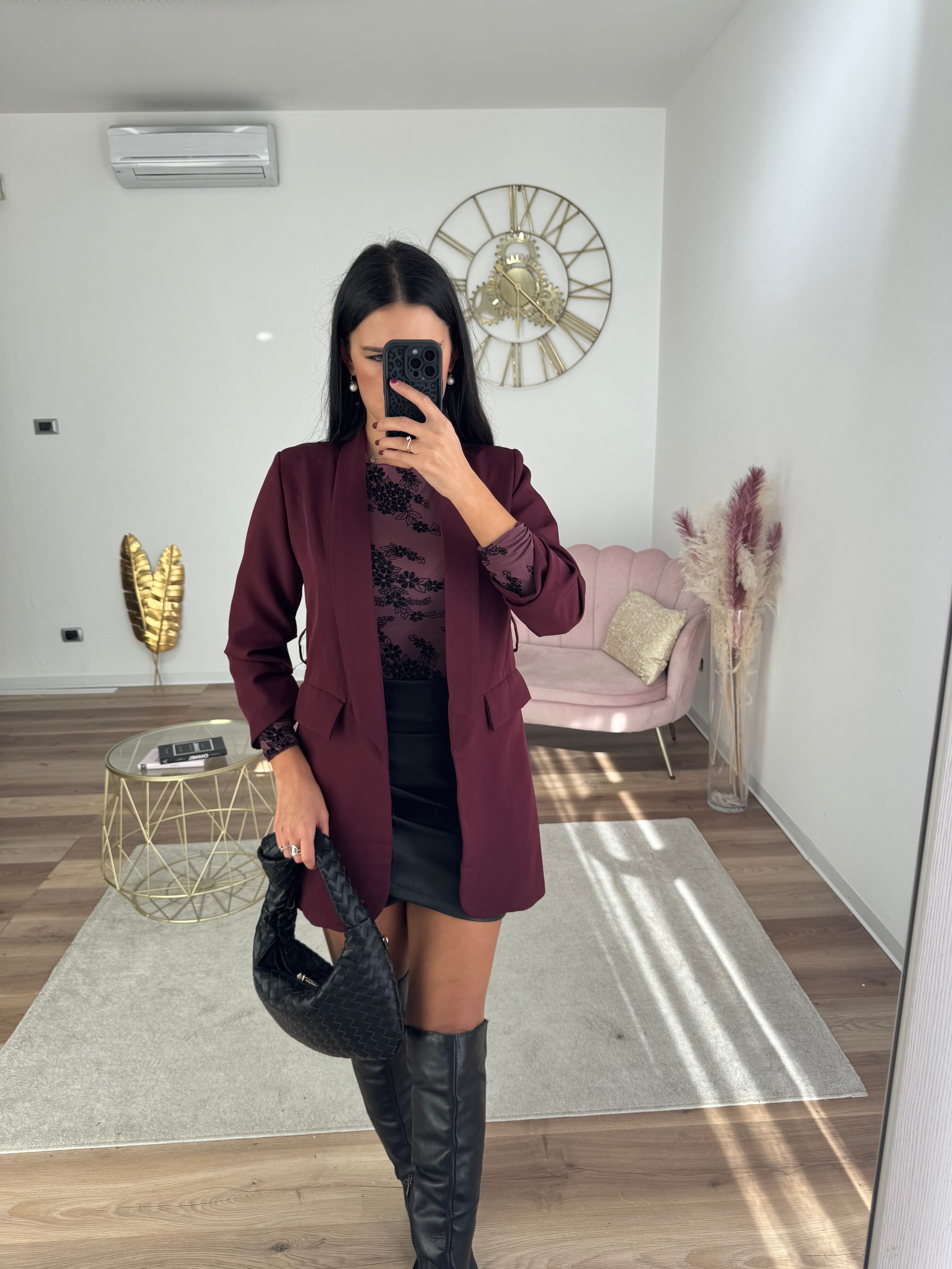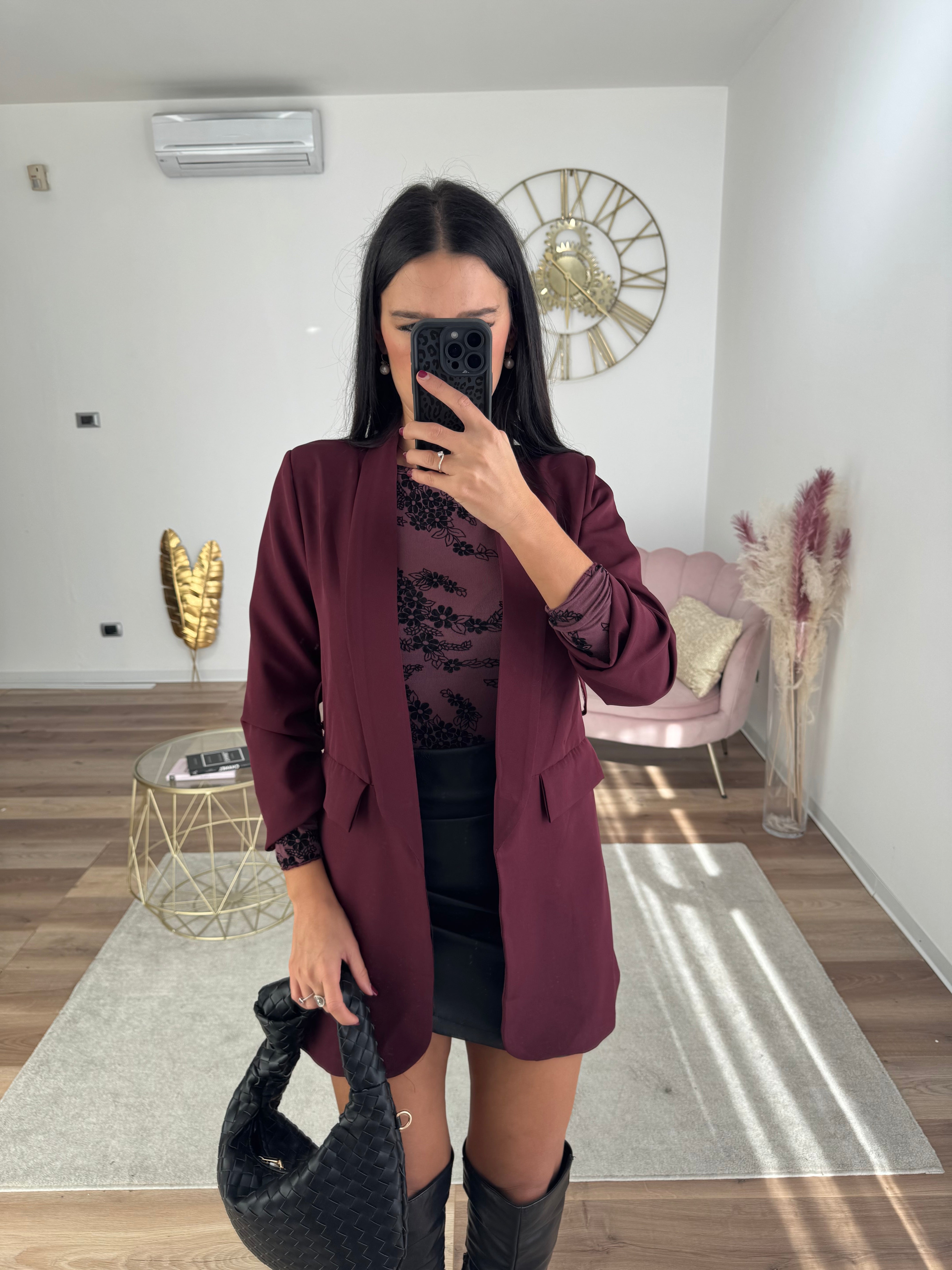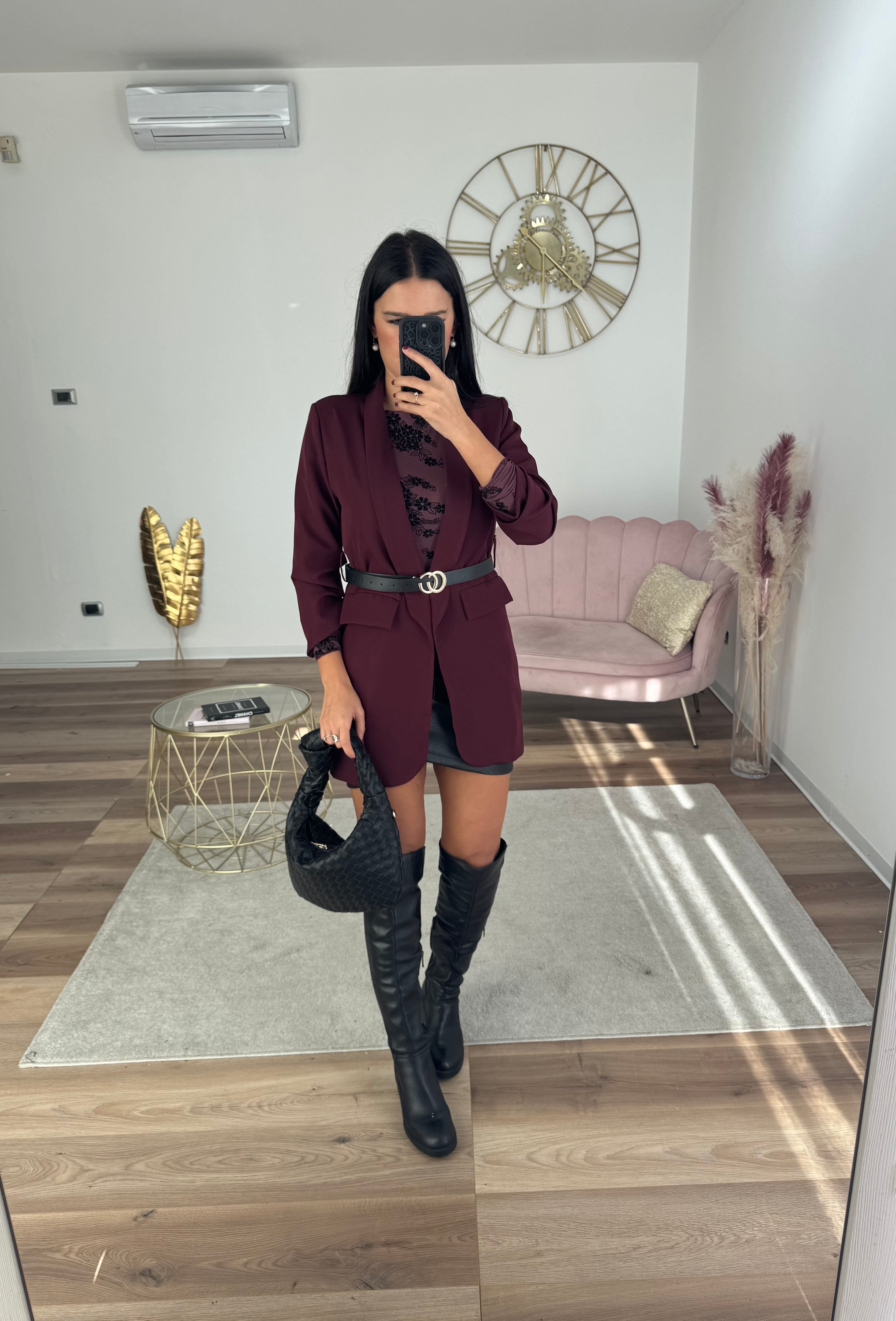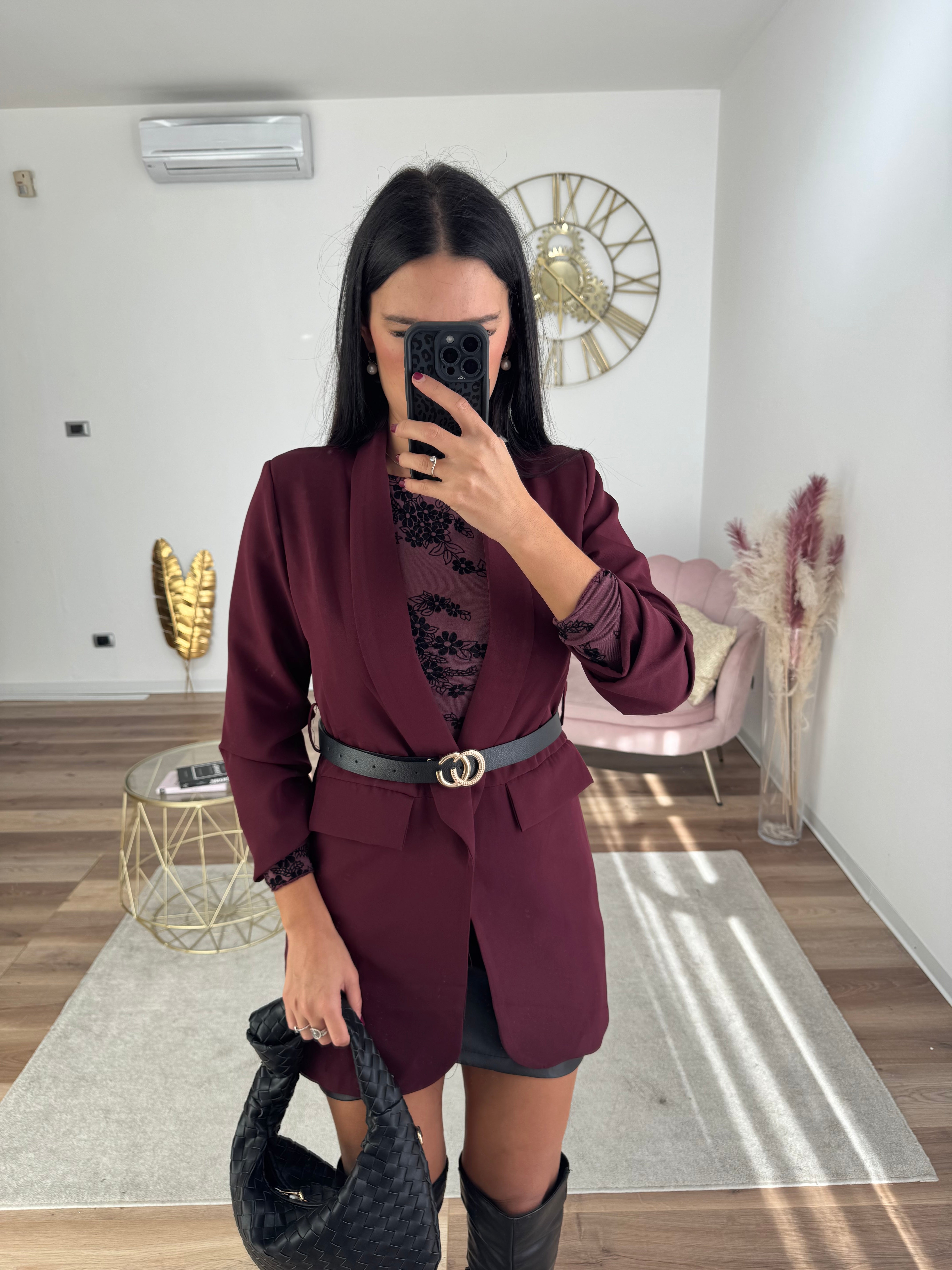 Blazer Lungo Con Cintura Bordeaux