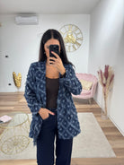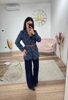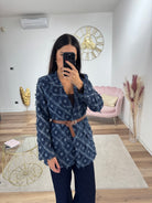 Blazer foderato internamente, completo di cintura, spallin imbottite