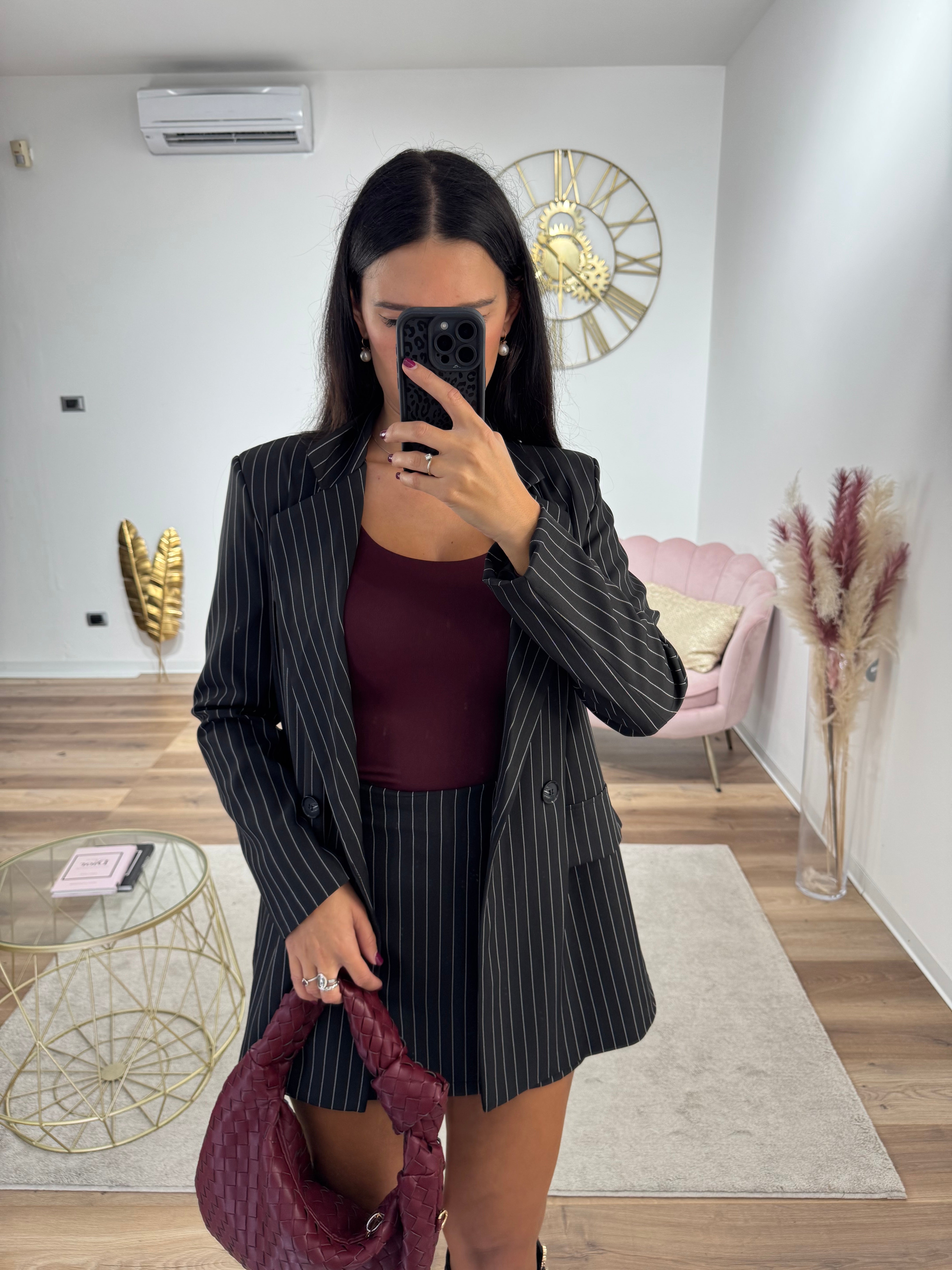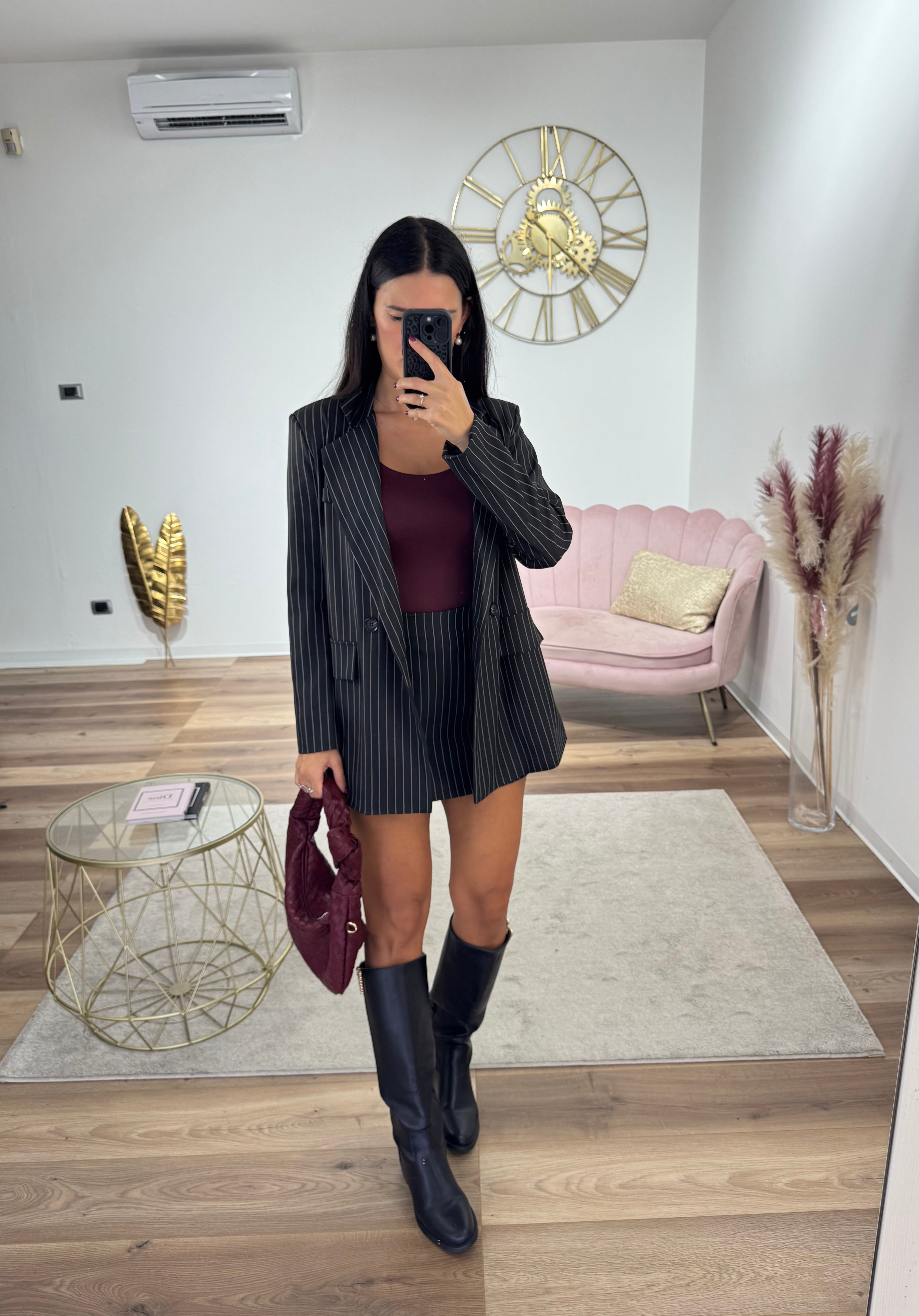 Body elasticizzato a manica lunga, tessuto più leggero rispetto al body scollo tondo.