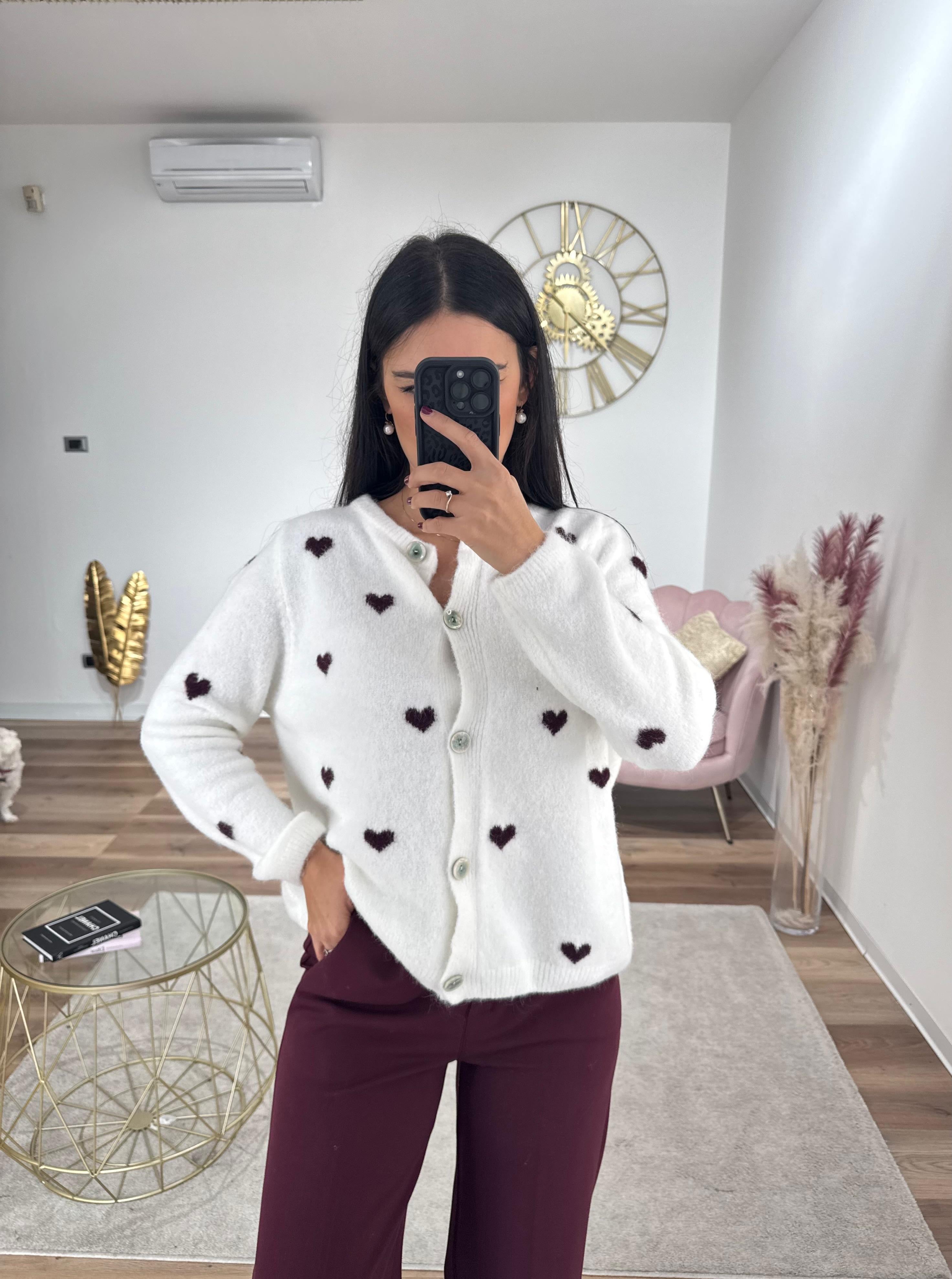 Cardigan Con cuoricini bianco e bordeuax