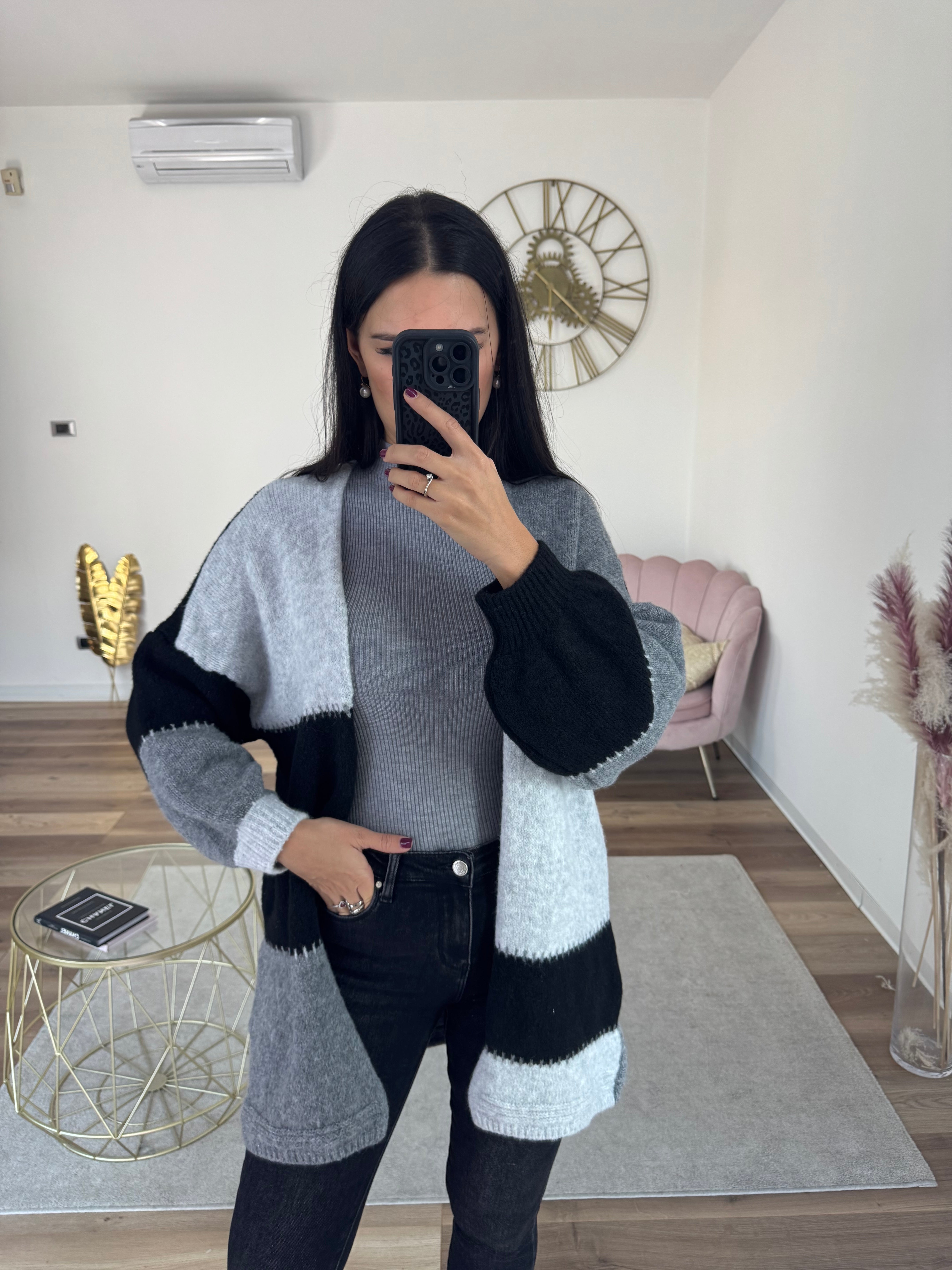Cardigan lungo caldo e morbido, maniche a sbuffo