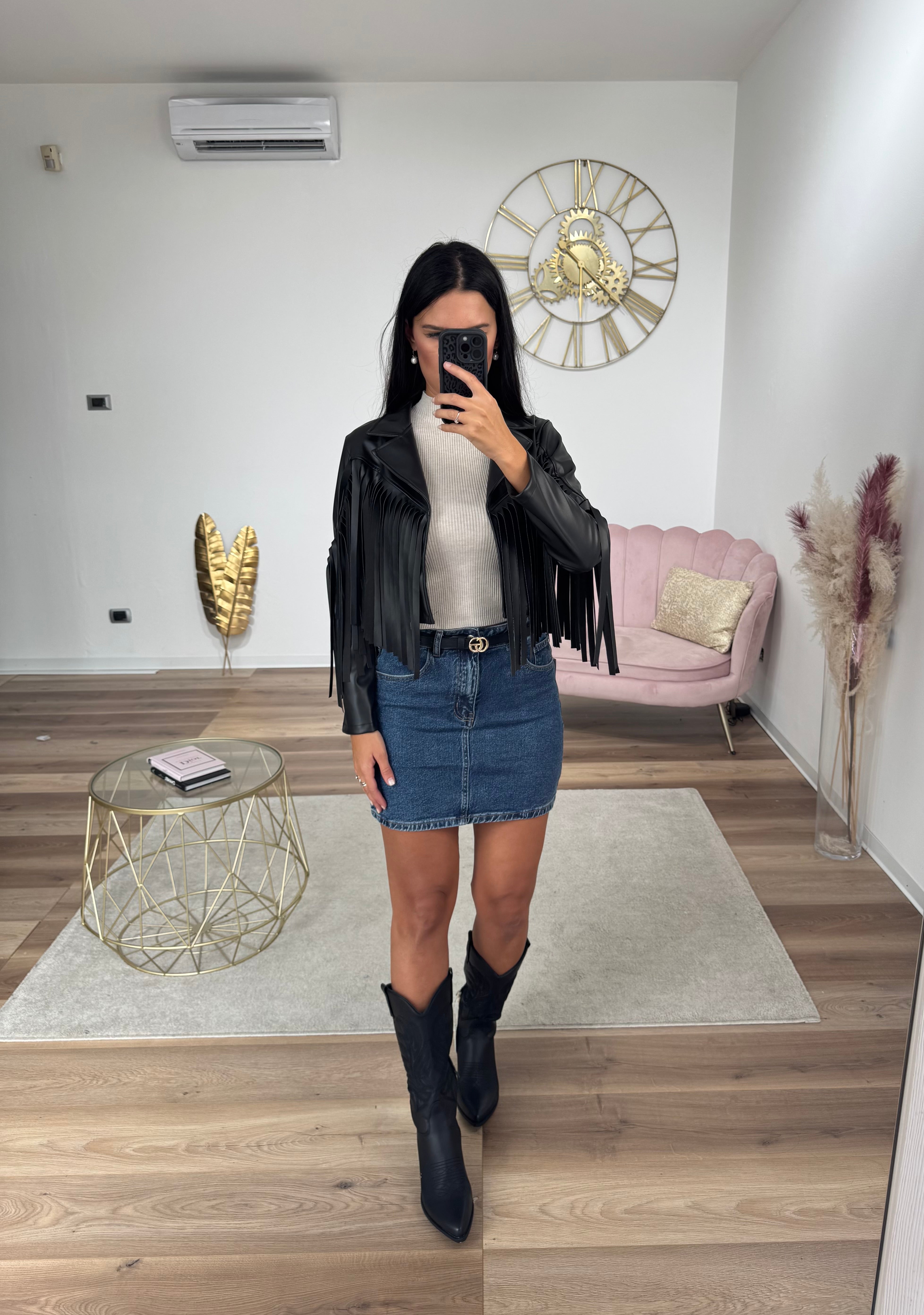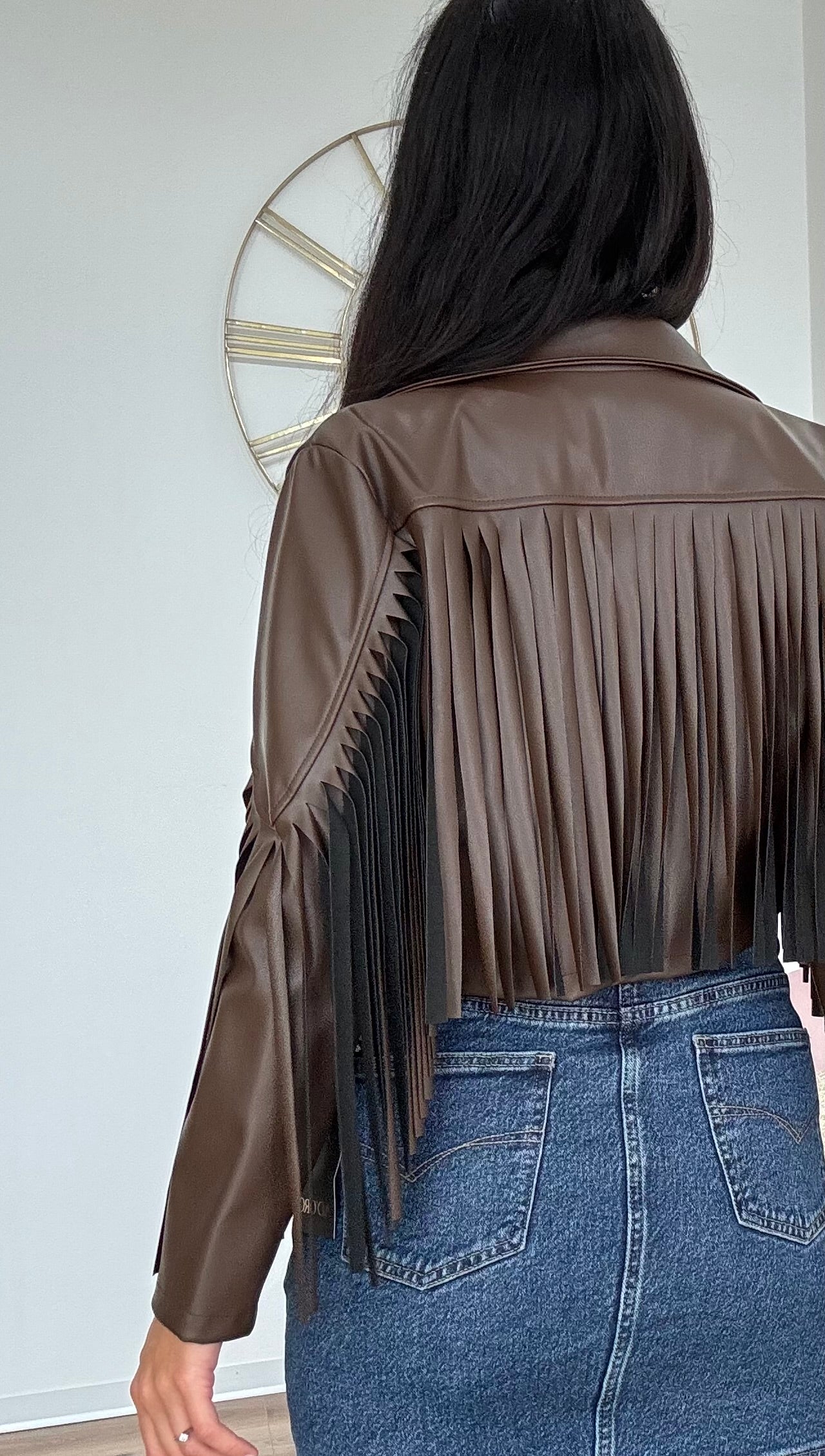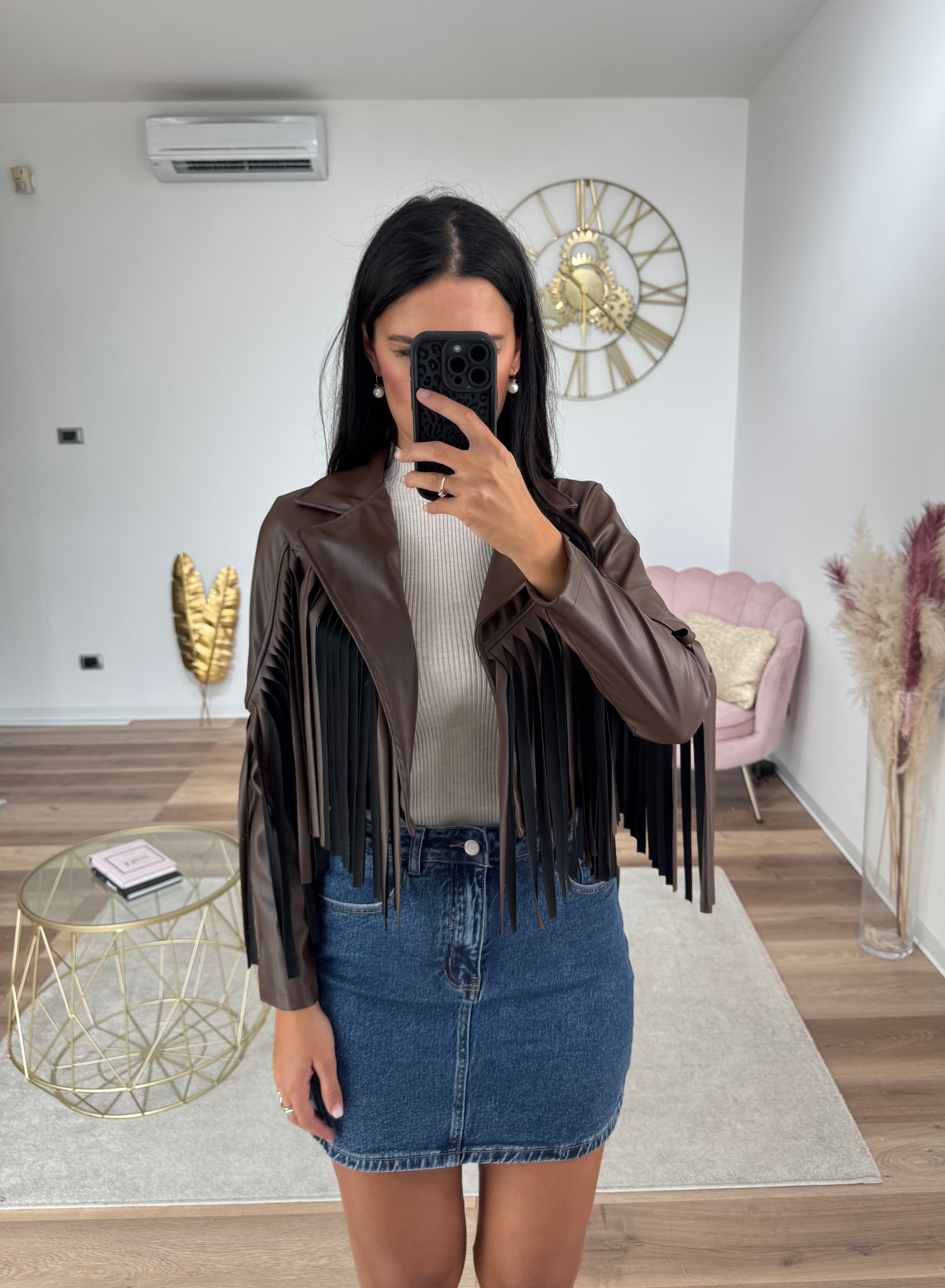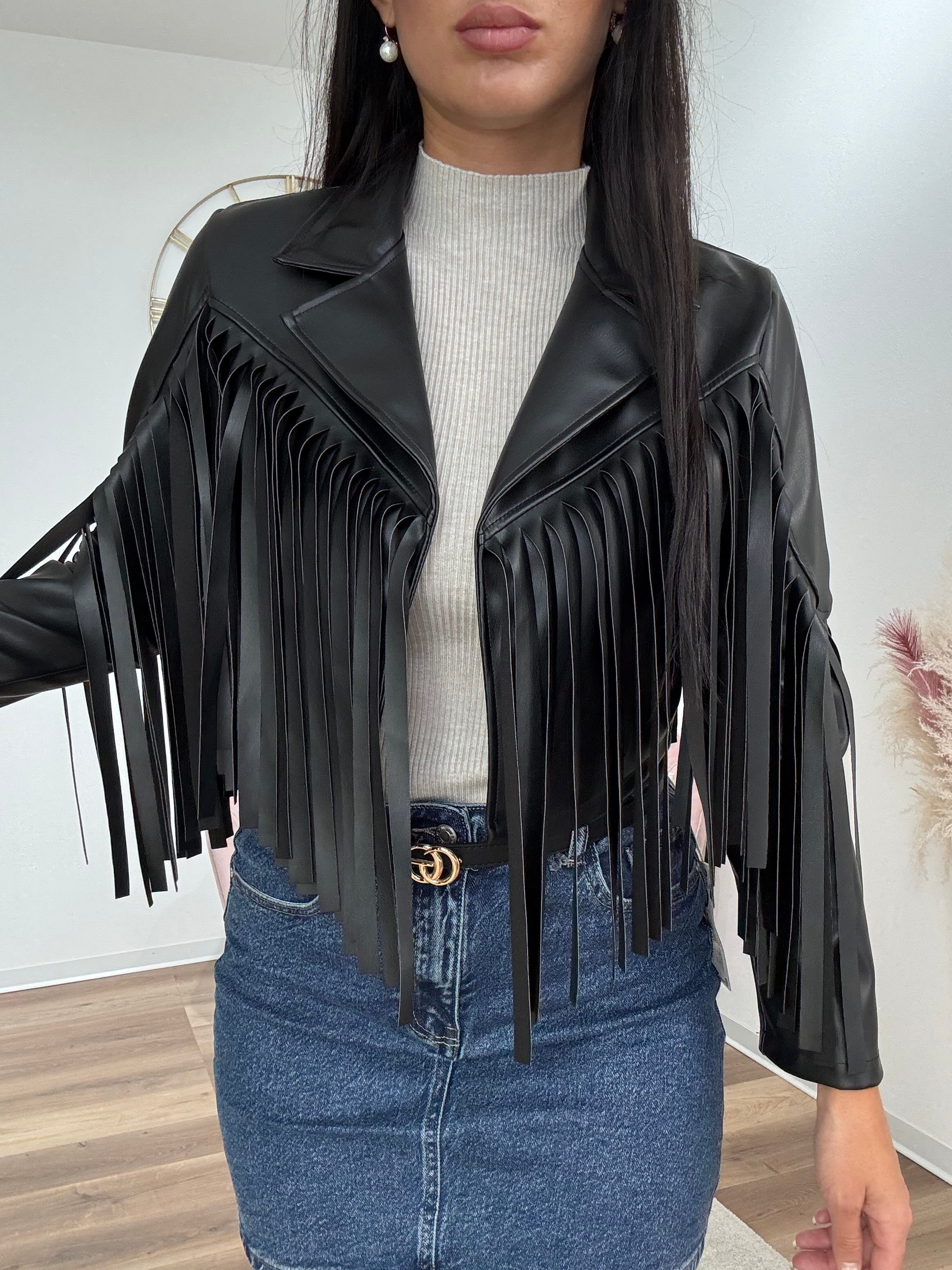 Giacca scamosciata con frange e borchie, lunghezza normale.