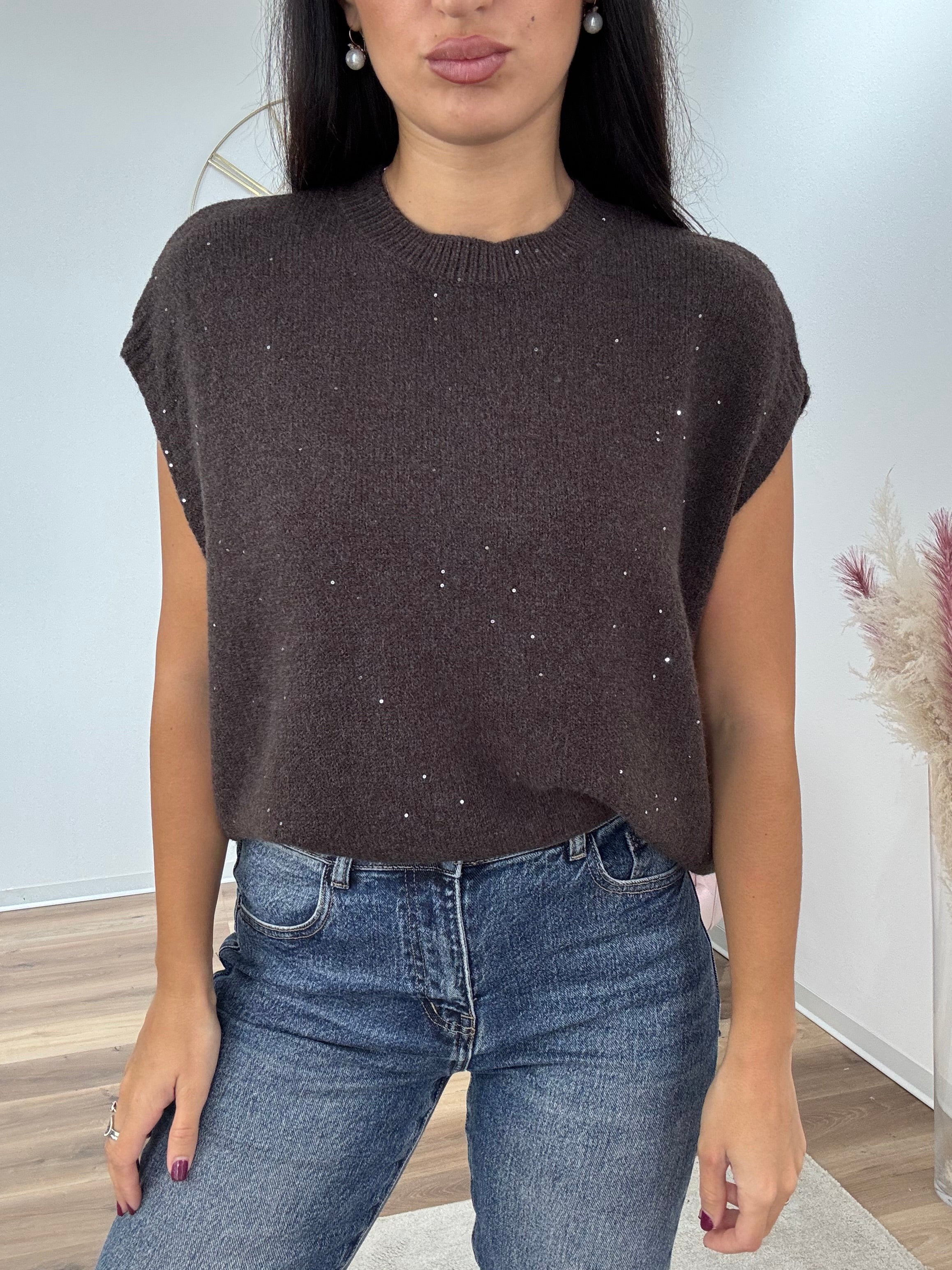 Gilet smanicato morbido, con micro paillettes, lunghezza normale, elasticizzato