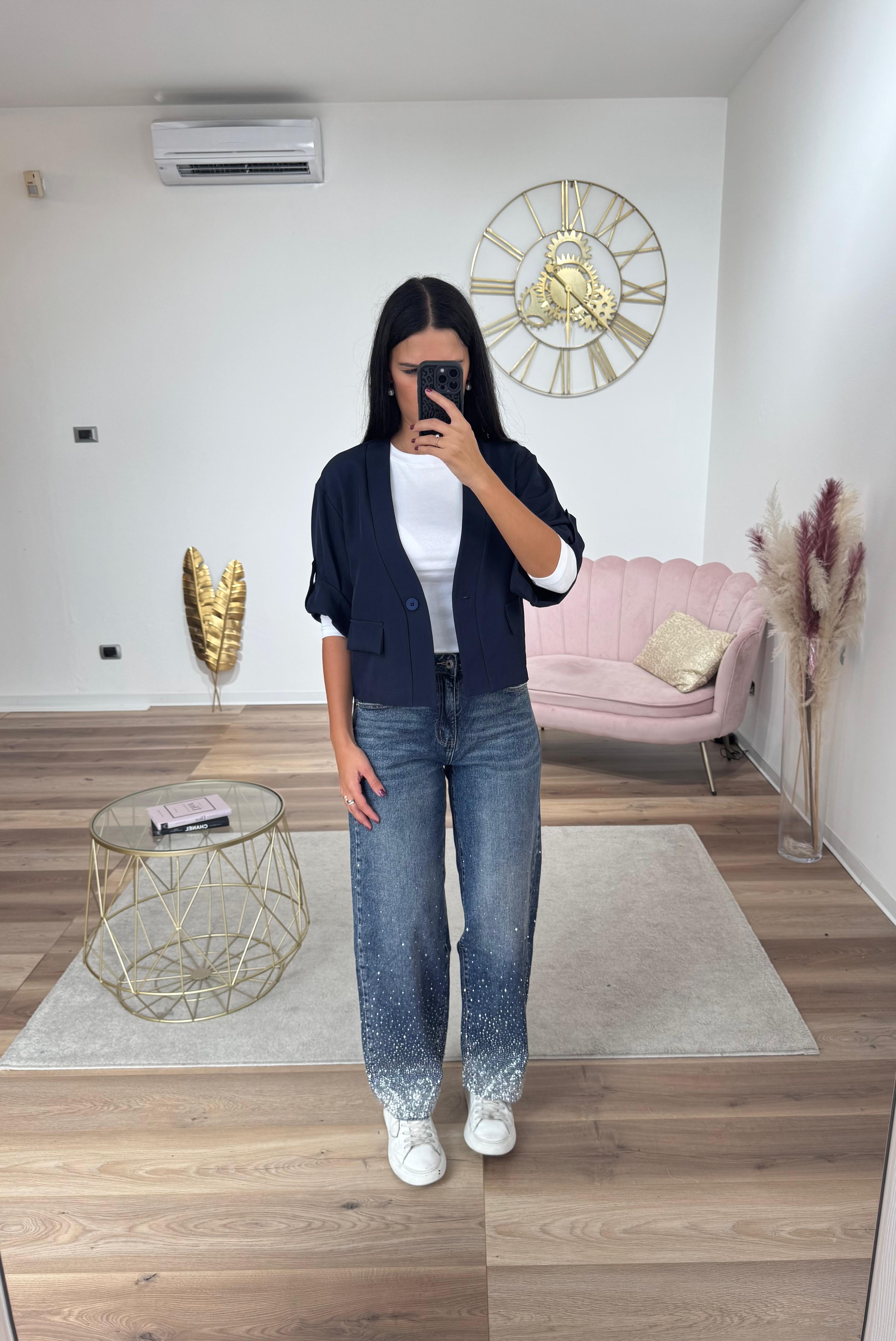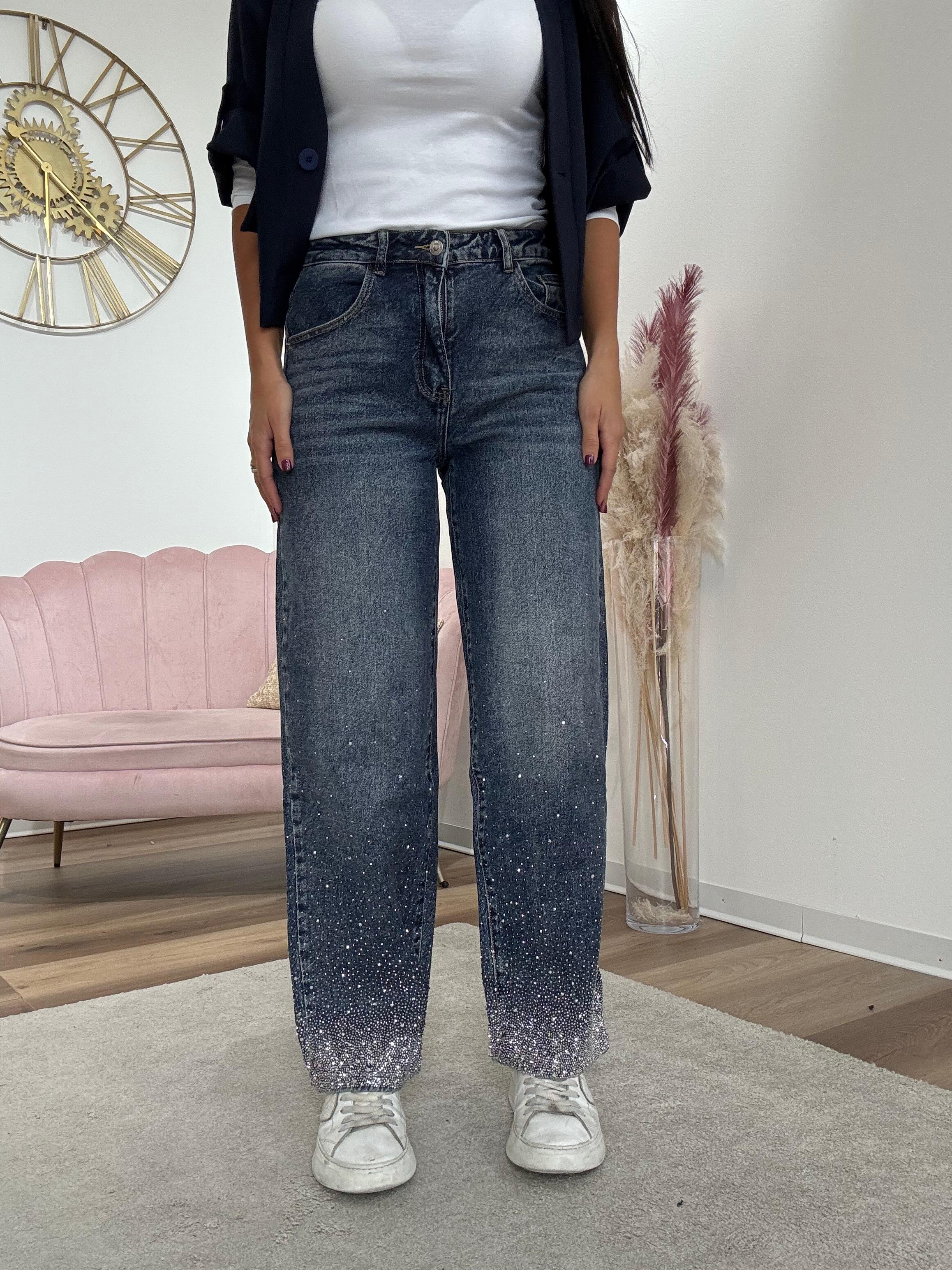 Jeans a palazzo con strass, vita alta, lavaggio chiaro