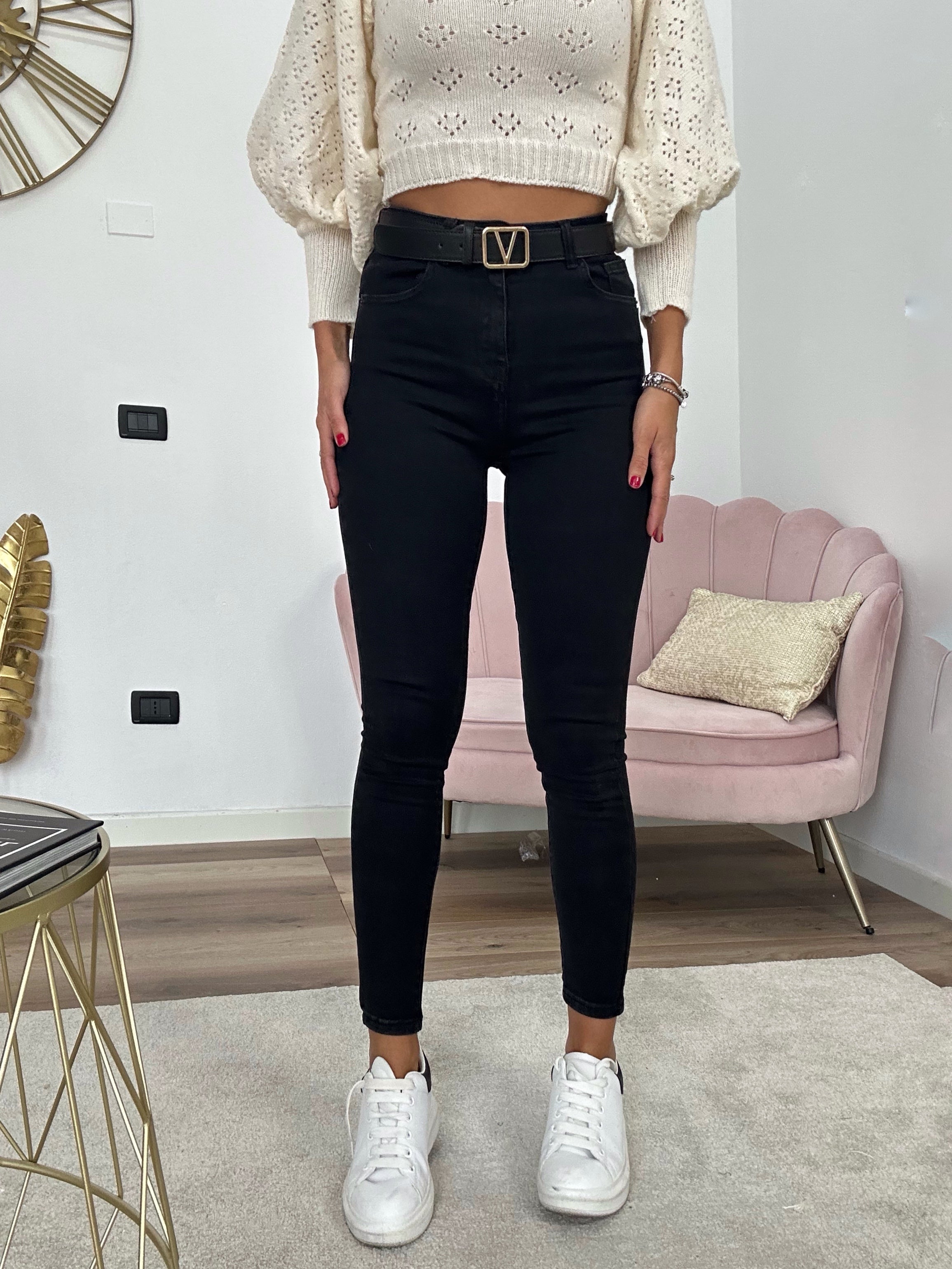 Jeans modello skinny, a vita alta, elasticizzato, veste regolare.
