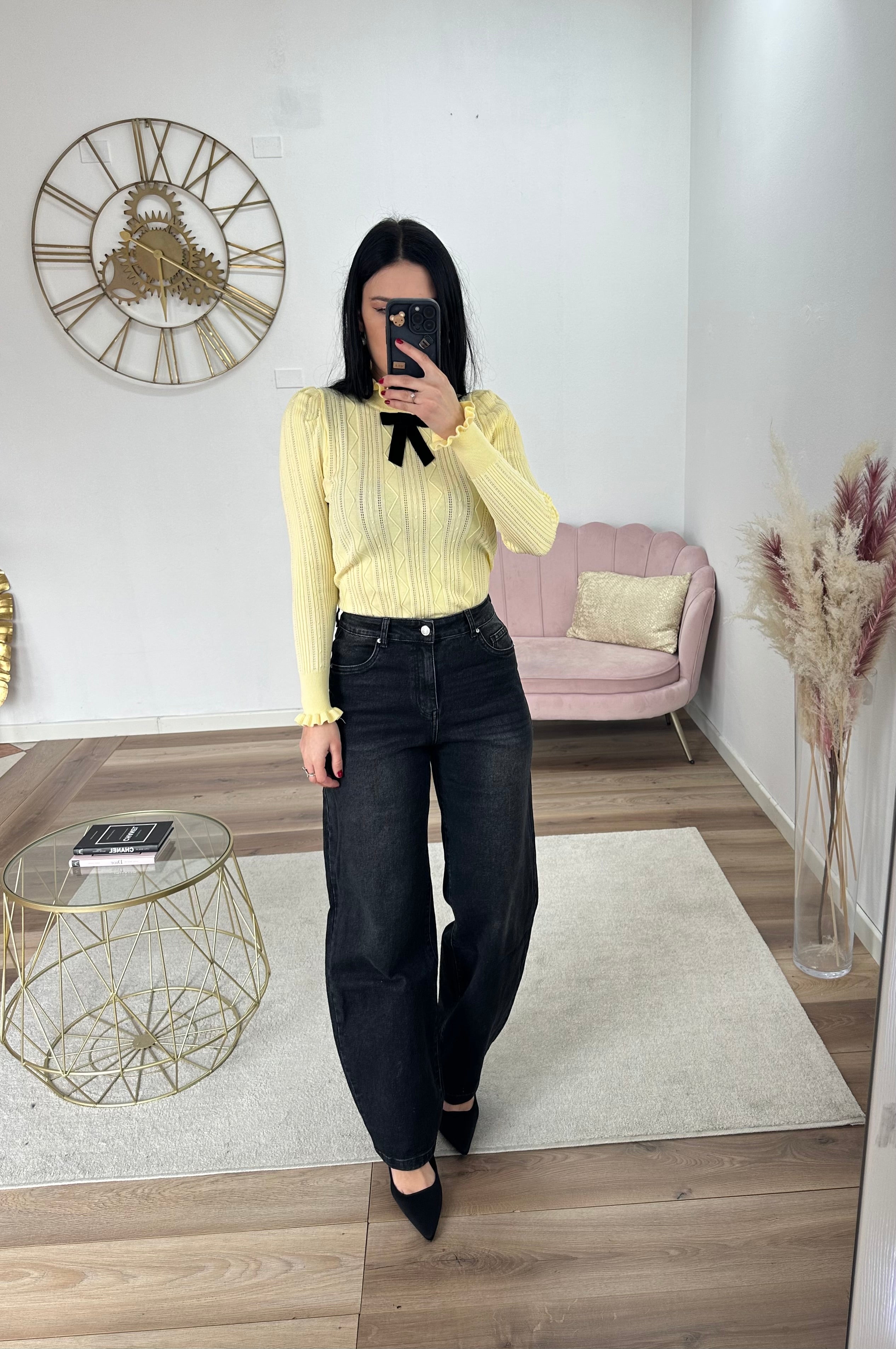 Jeans modello slouchy a vita alta, elasticizzato. Se oscilli tra due taglie consigliamo la taglia più piccola.