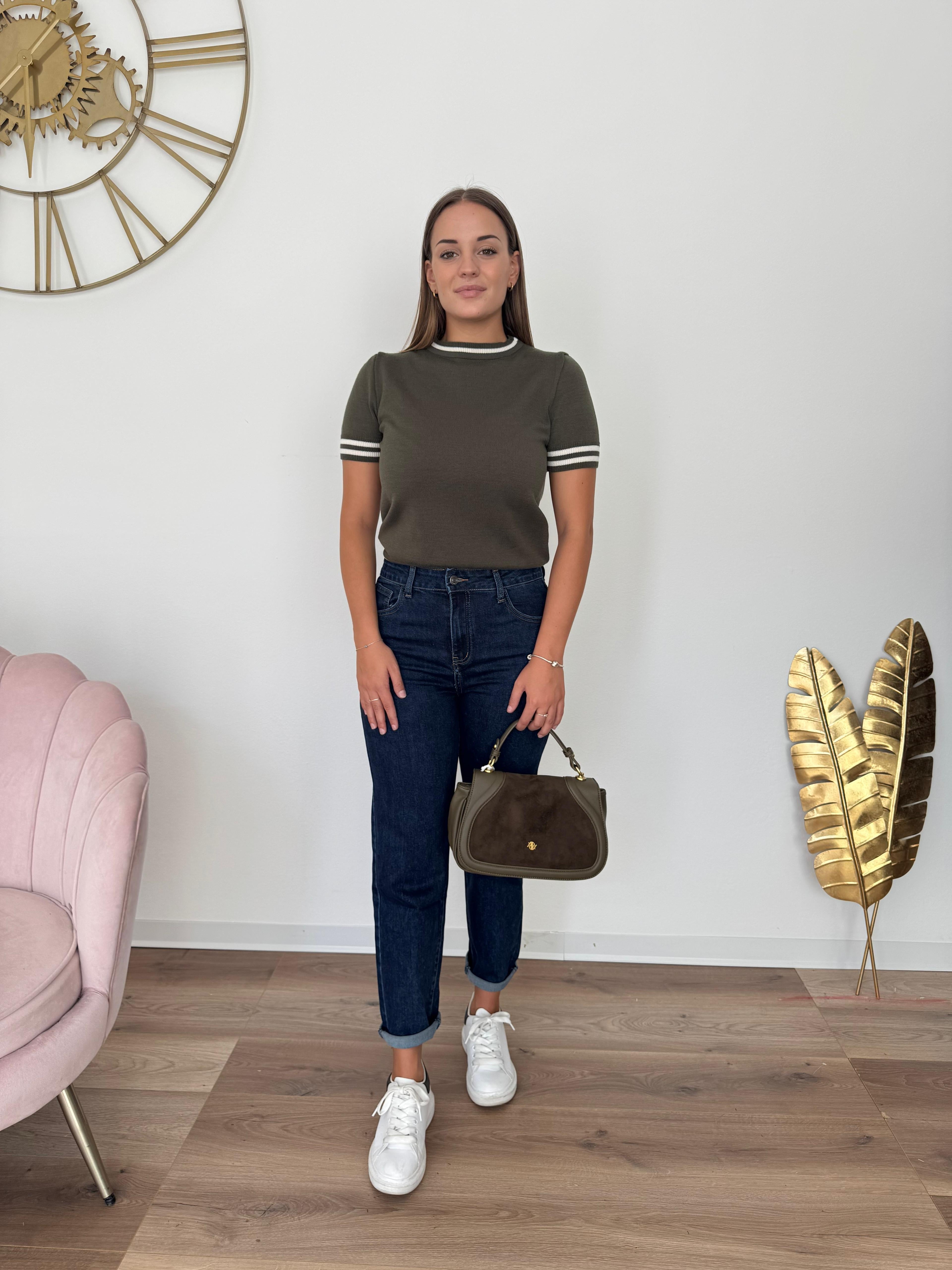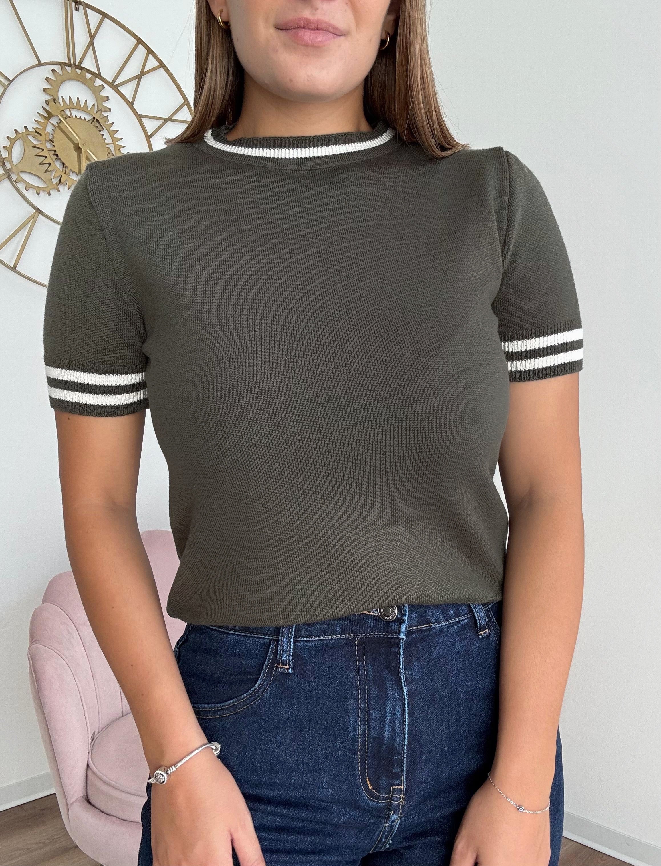 Maglia a maniche corte, calda e morbida, elasticizzata, lunghezza normale