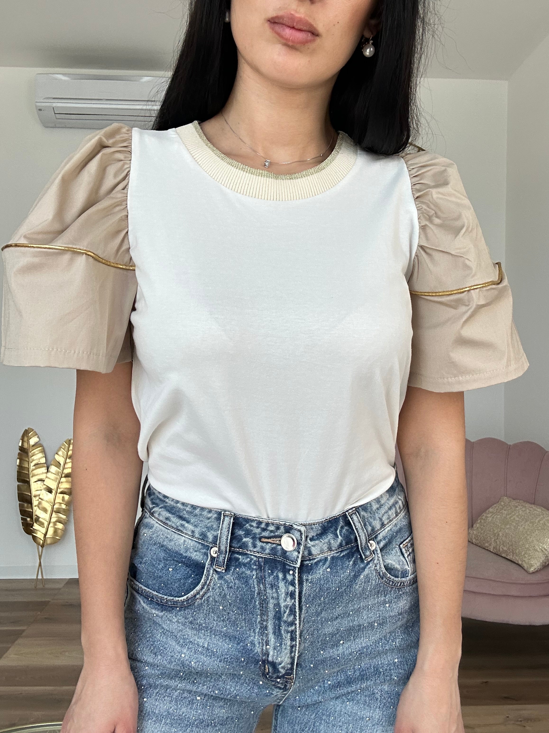 Maglia semplice, con maniche a sbuffo