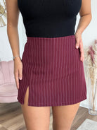 Pantagonna gessato con piccolo spacco, chiusura laterale con zip, vita elastica