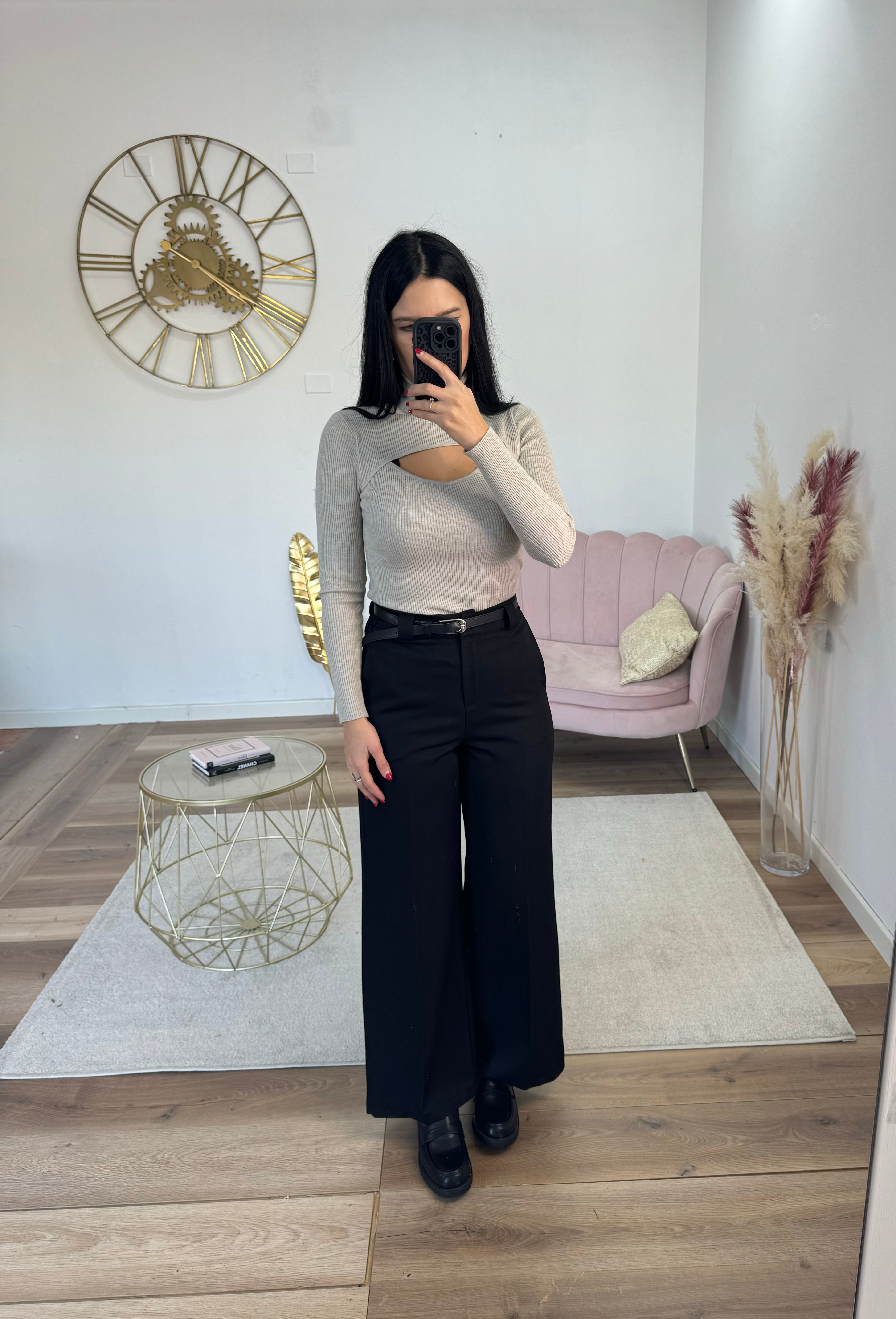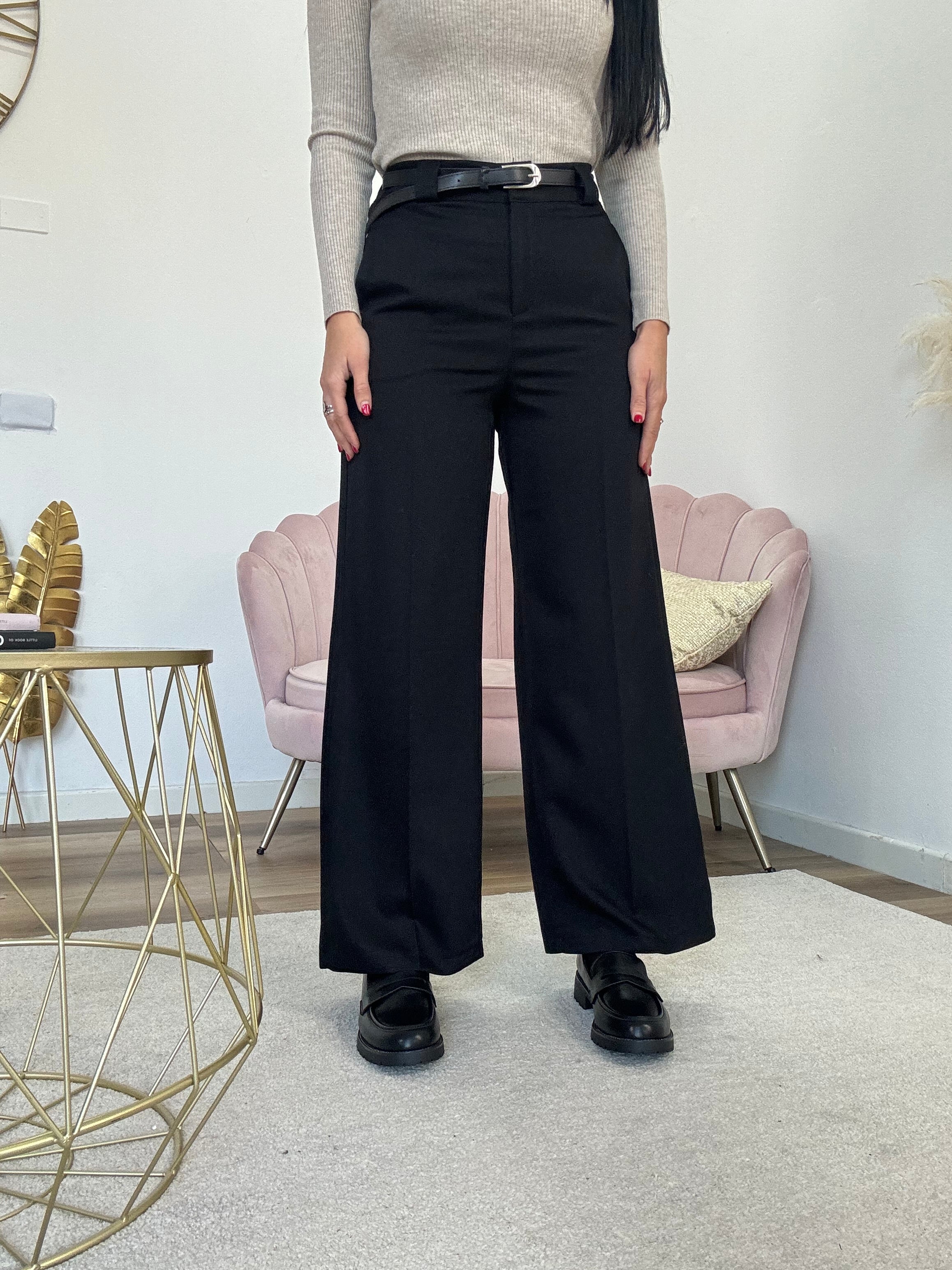 Pantalone palazzo, vita alta, completo di cintura (non quella della foto ma molto simile), con tasche