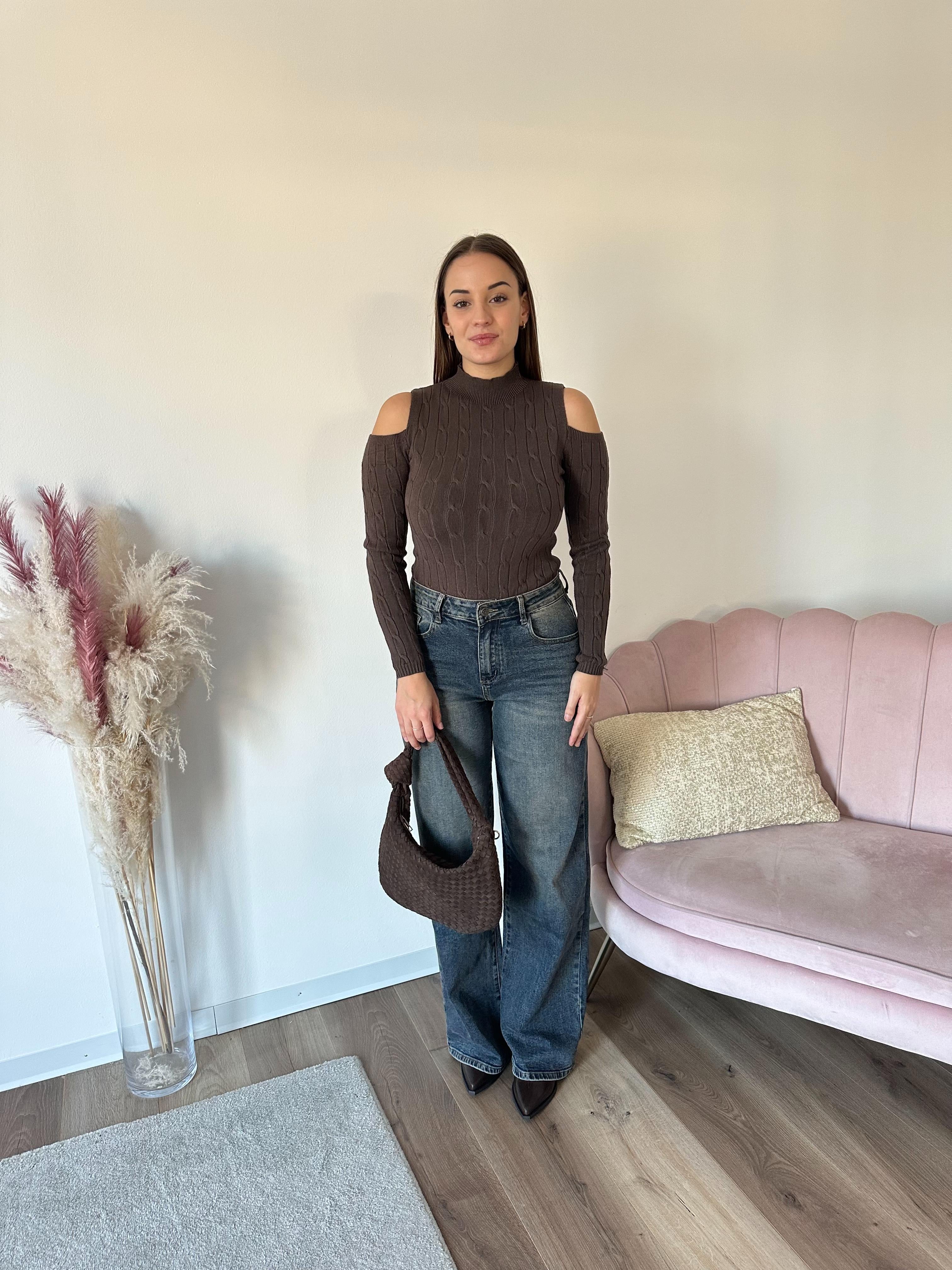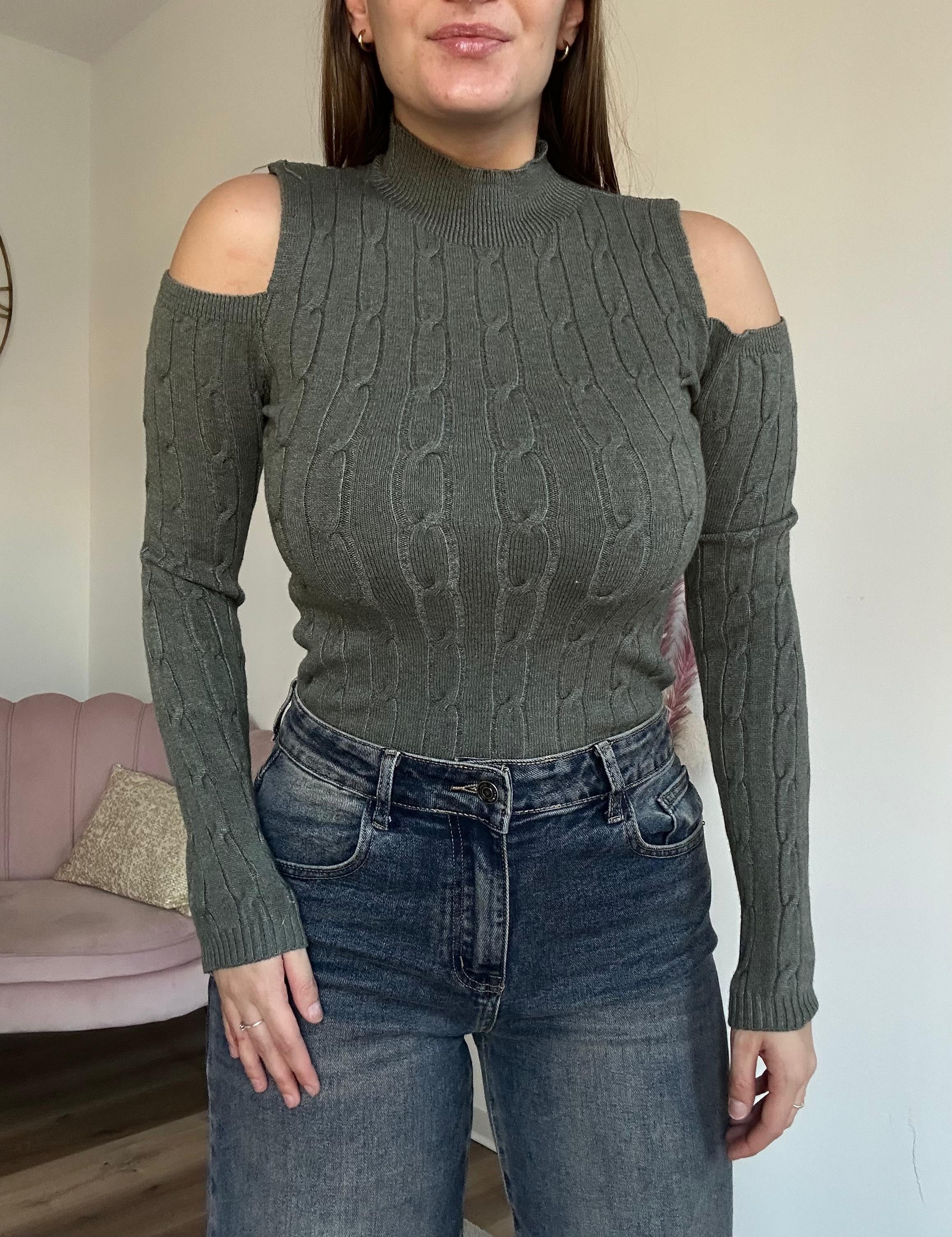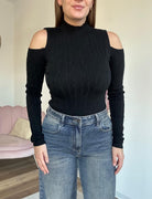 Pull lavorazione a treccia, caldo e morbido, con aperture sulle spalle, elasticizzato, lunghezza normale