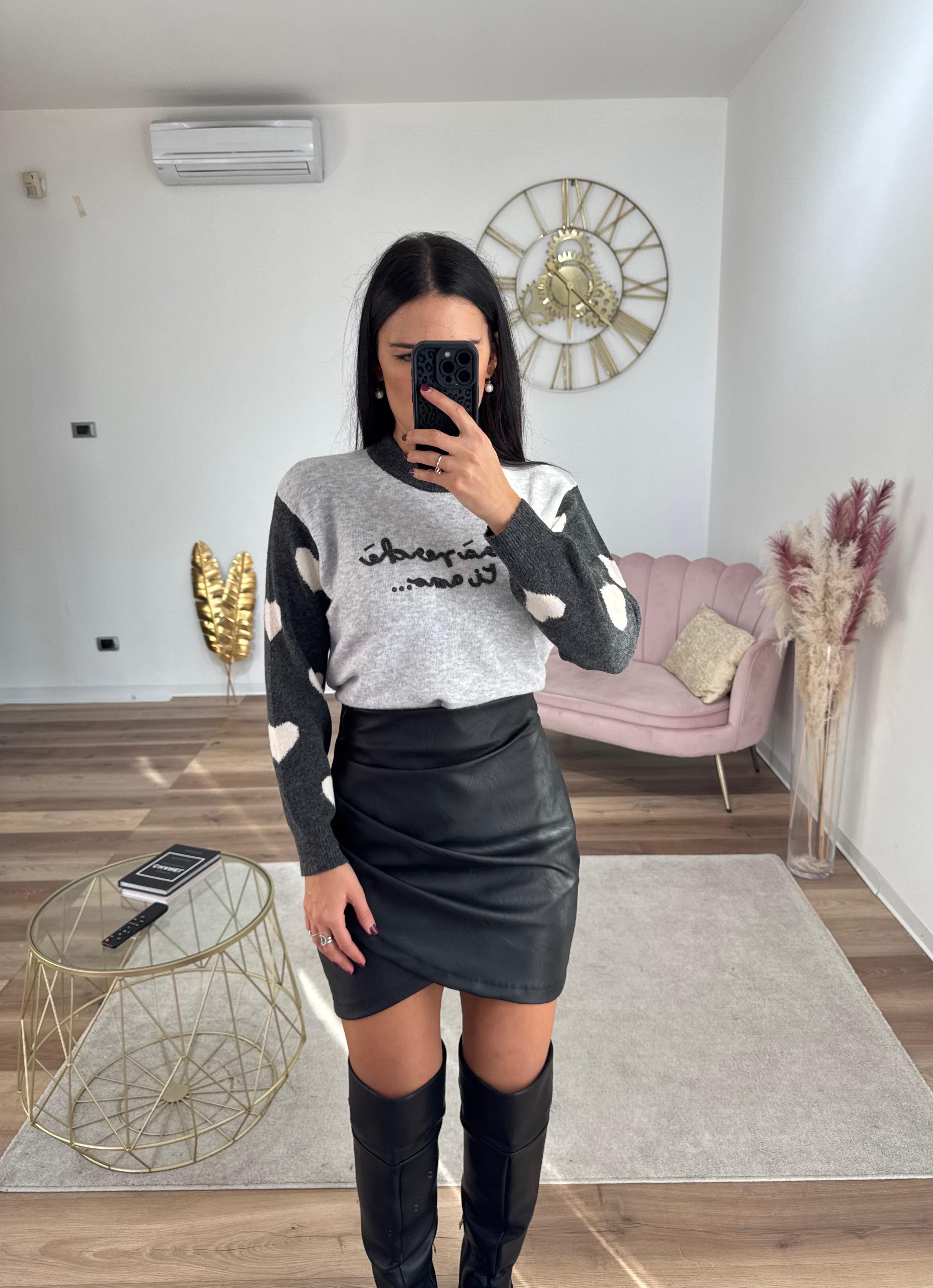 Pull morbido e caldo con scritta in rilievo, elasticizzato, lunghezza normale,