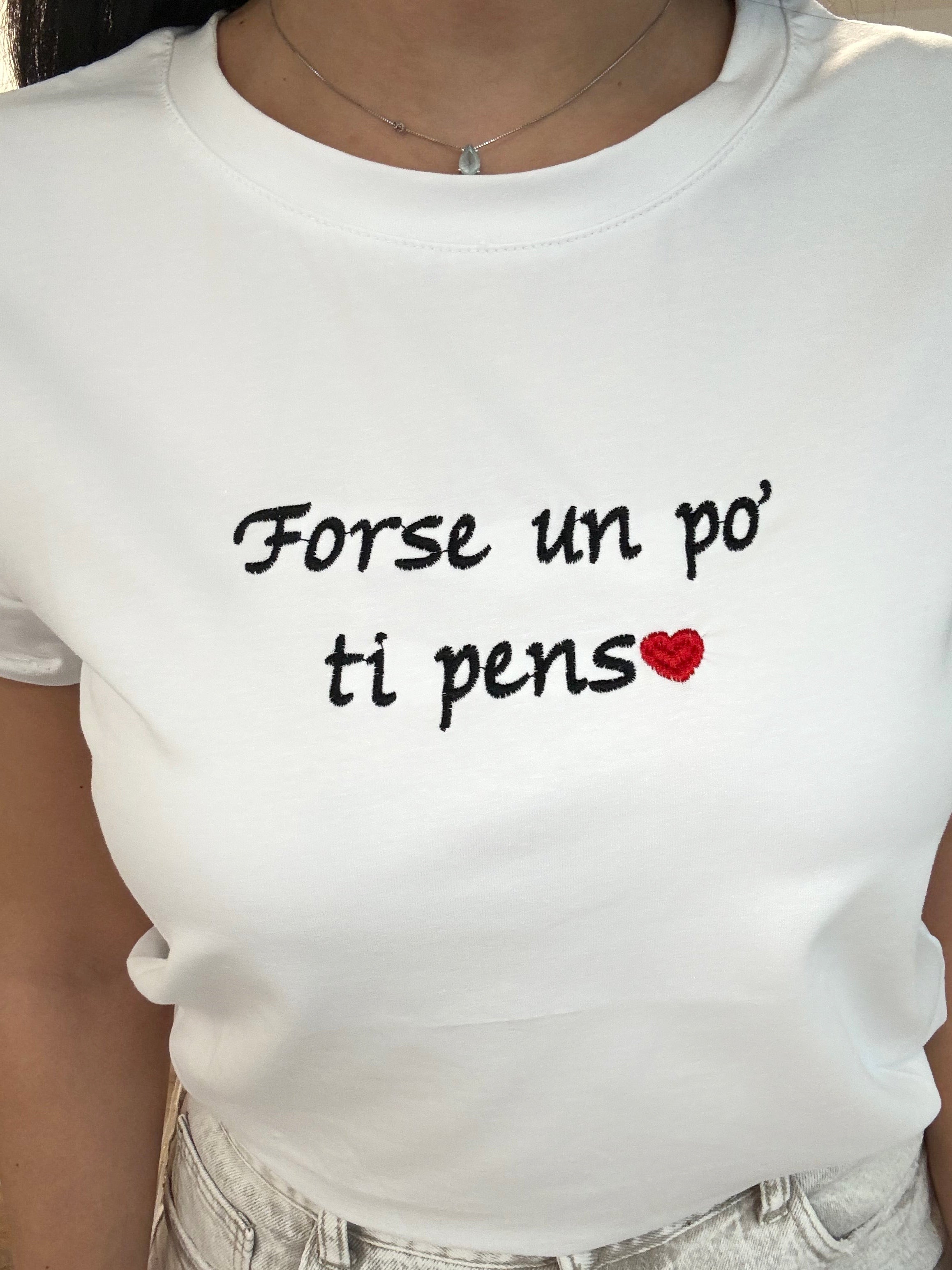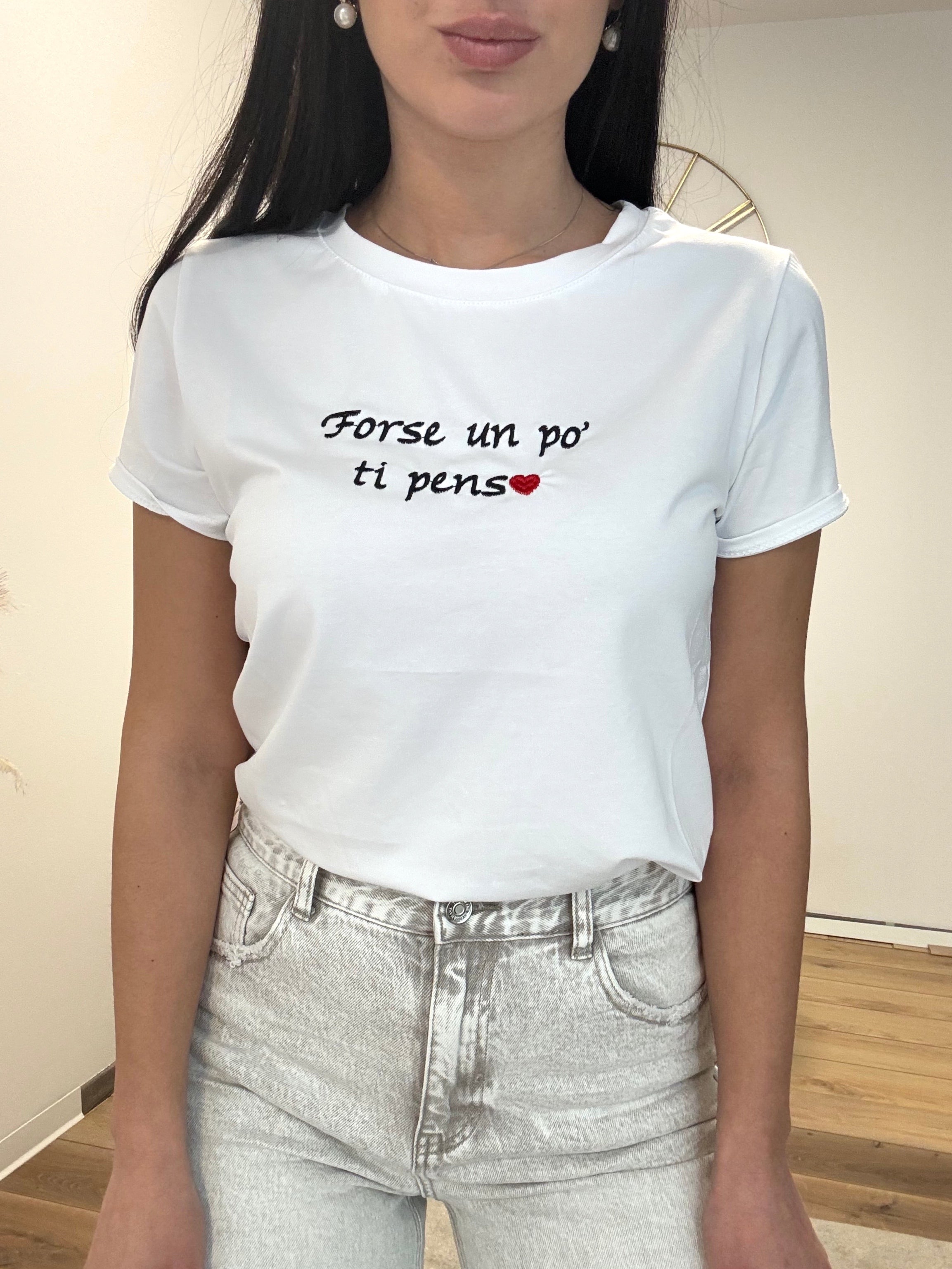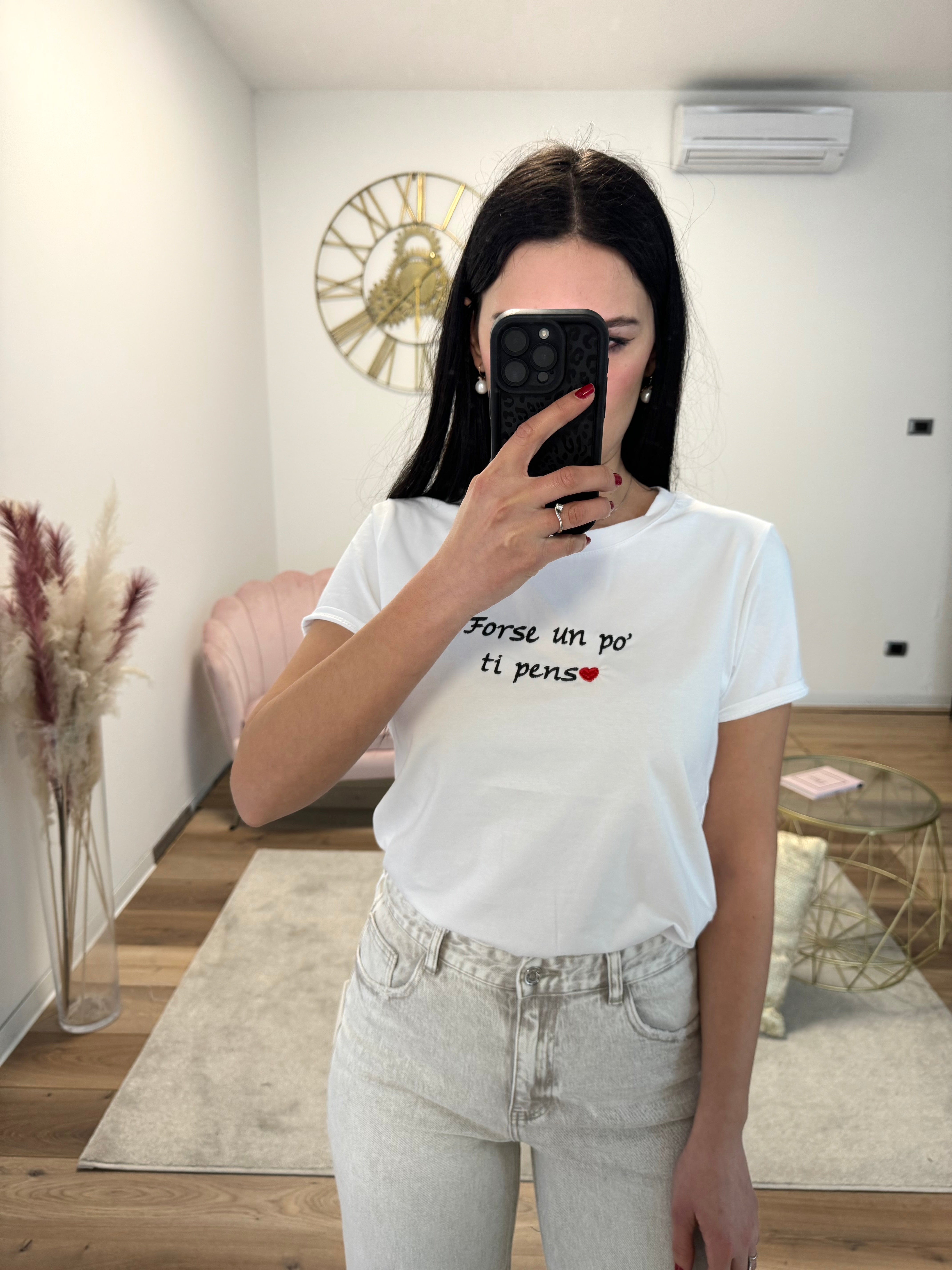T-shirt in cotone con scritta, lunghezza normale, elasticizzata