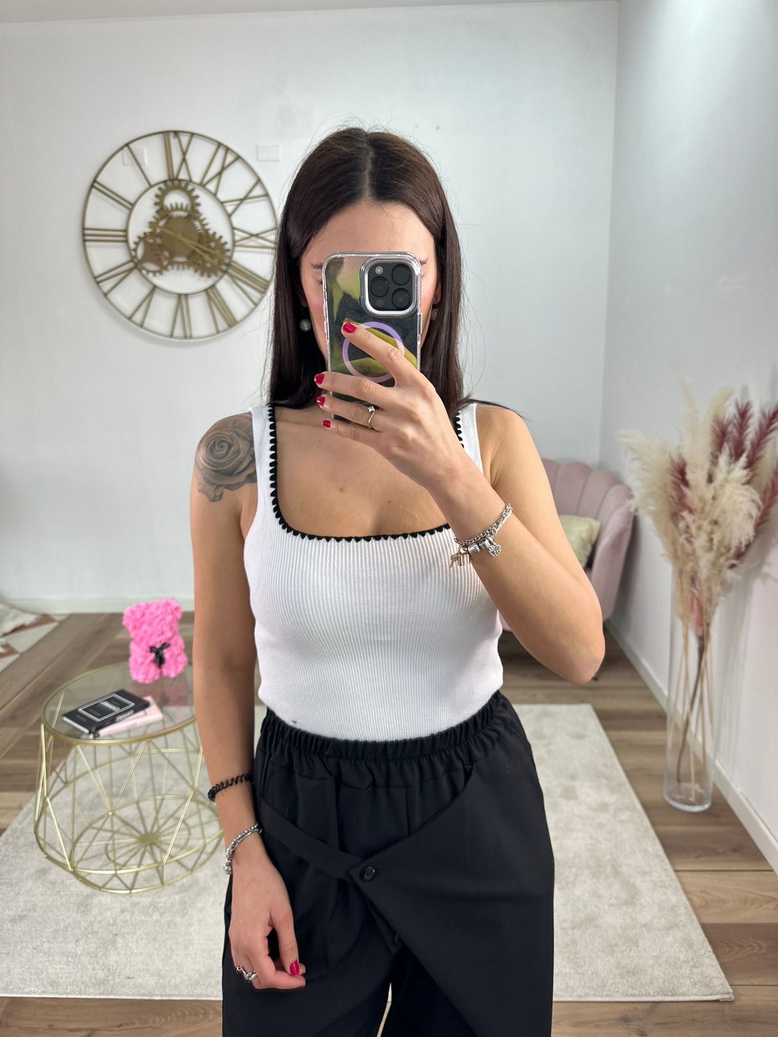 Top Filo Bianco Con Ricamo Nero
